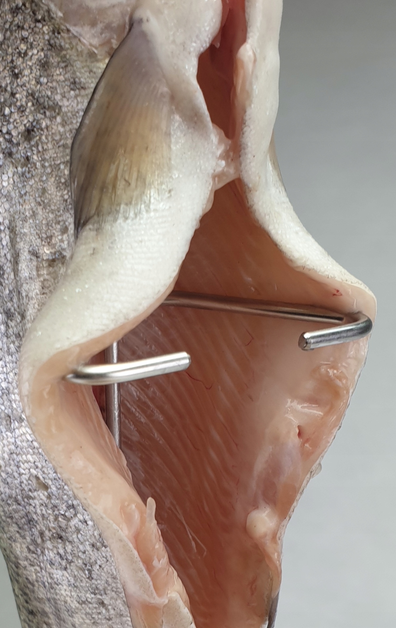 Найкраща та найнадійніша конструкція гачка для копчення риби. Спеціально розроблена форма гачка сприяє безпроблемному та стабільному підсіканню риби, щоб вона висіла в коптильні вертикально.
