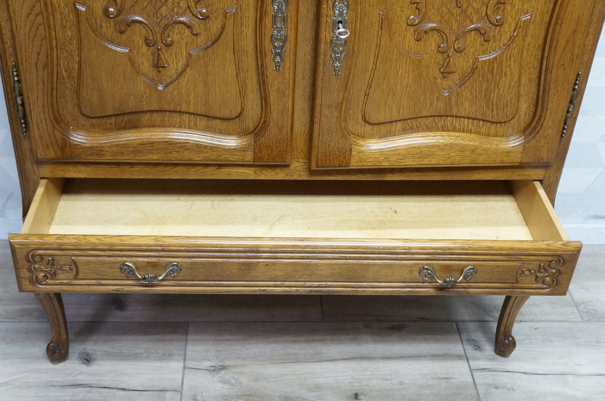 Шафа з двома дверками, висока на довгих зігнутих ніжках,