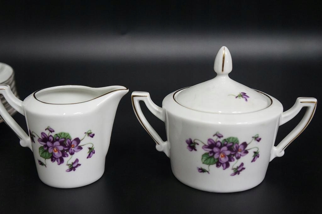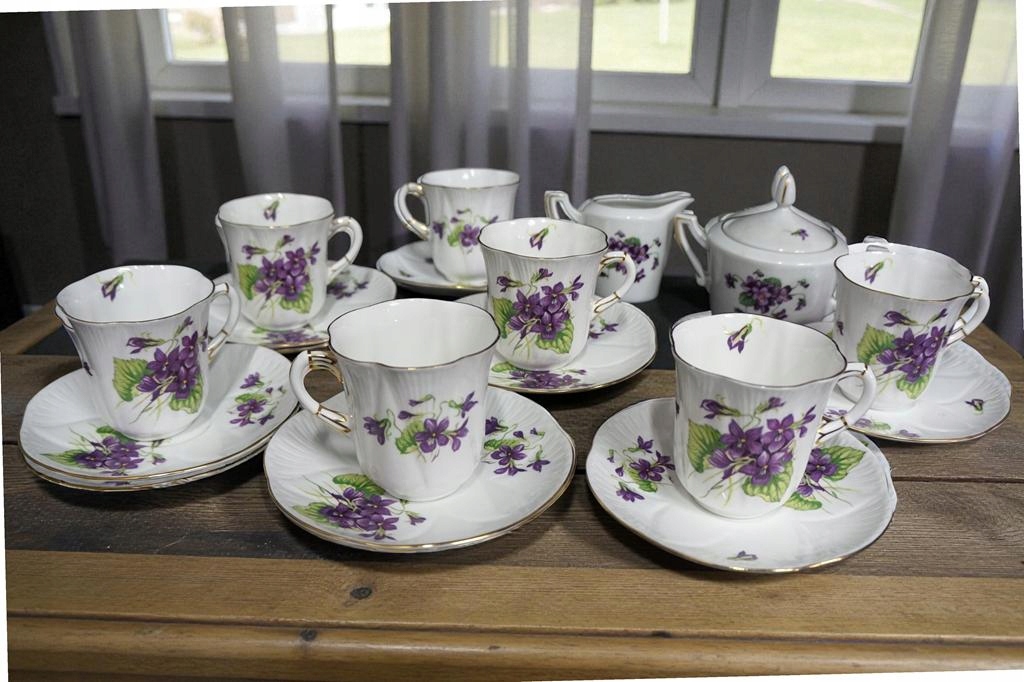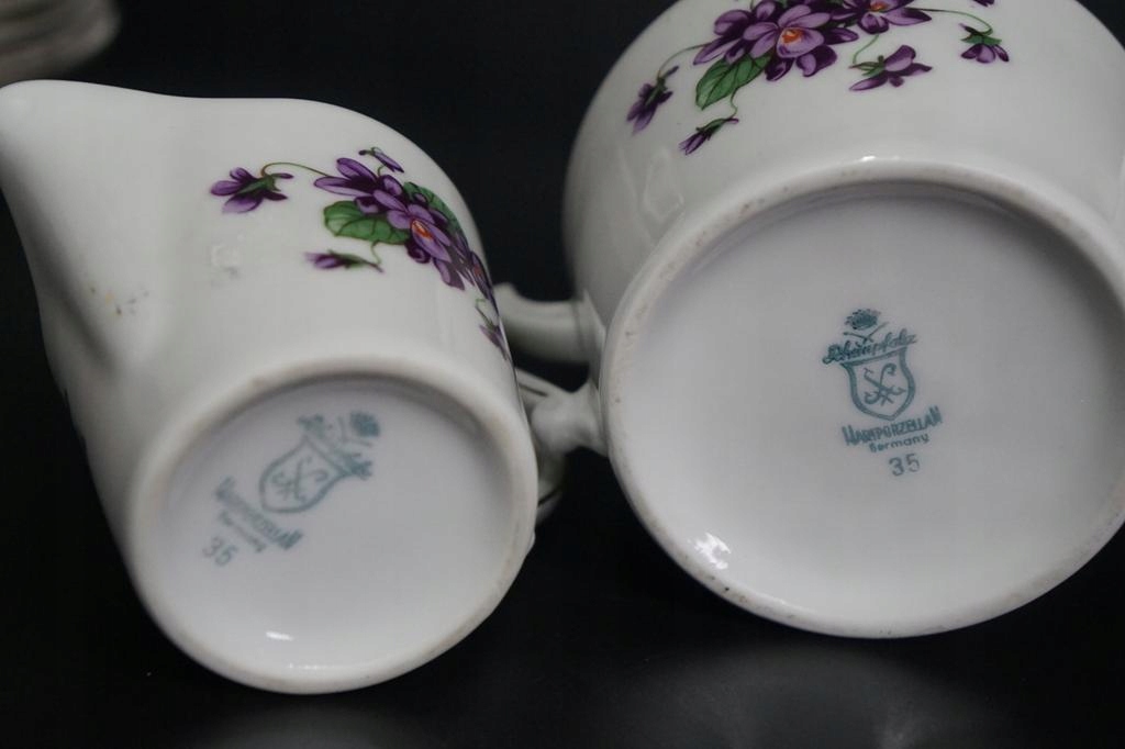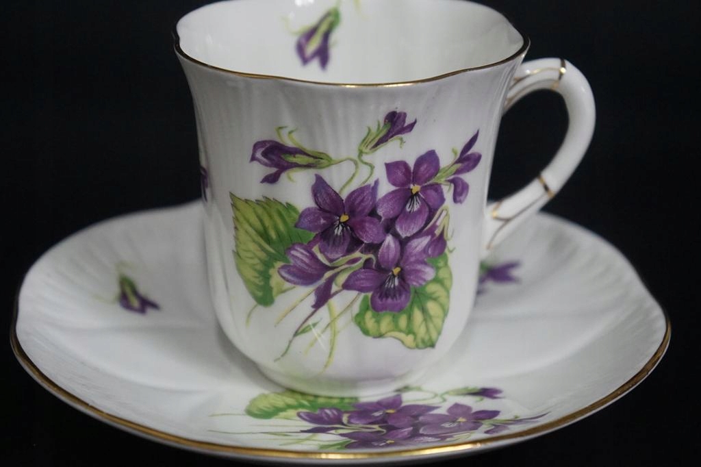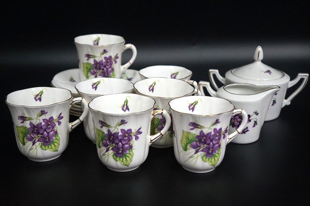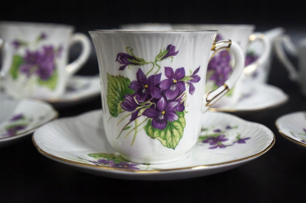 H-P ЧУДОВИЙ КАВОВИЙ НАБІР, ЧАШКИ І БЮДЦЕ З ФІАЛКАМИ + БЕЗКОШТОВНО