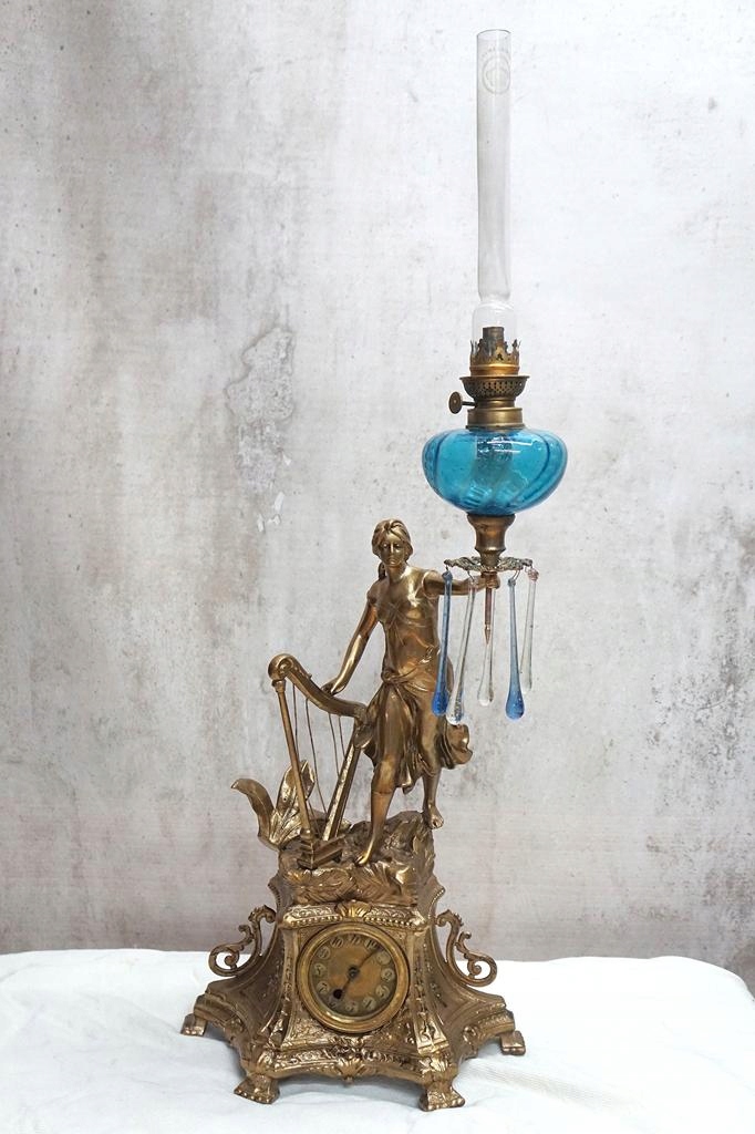 H-P ЦІКАВА ГАСОВА ЛАМПА З ФІГУРНИМ КАМІННИМ ГОДИННИКОМ