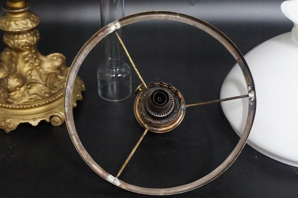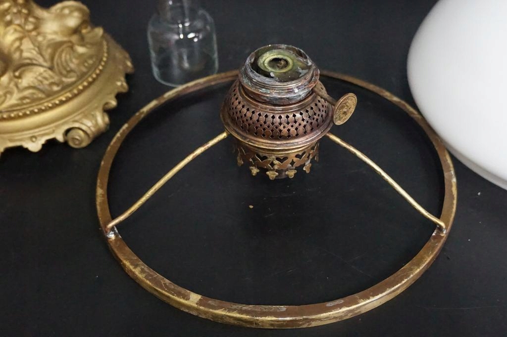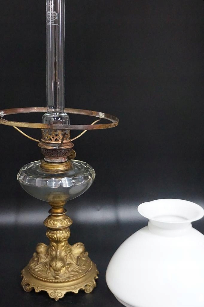 гарний масляний світильник на декоративній чавунній колоні та підставці