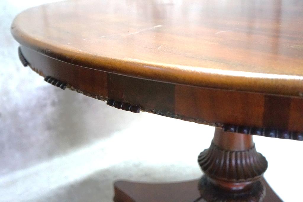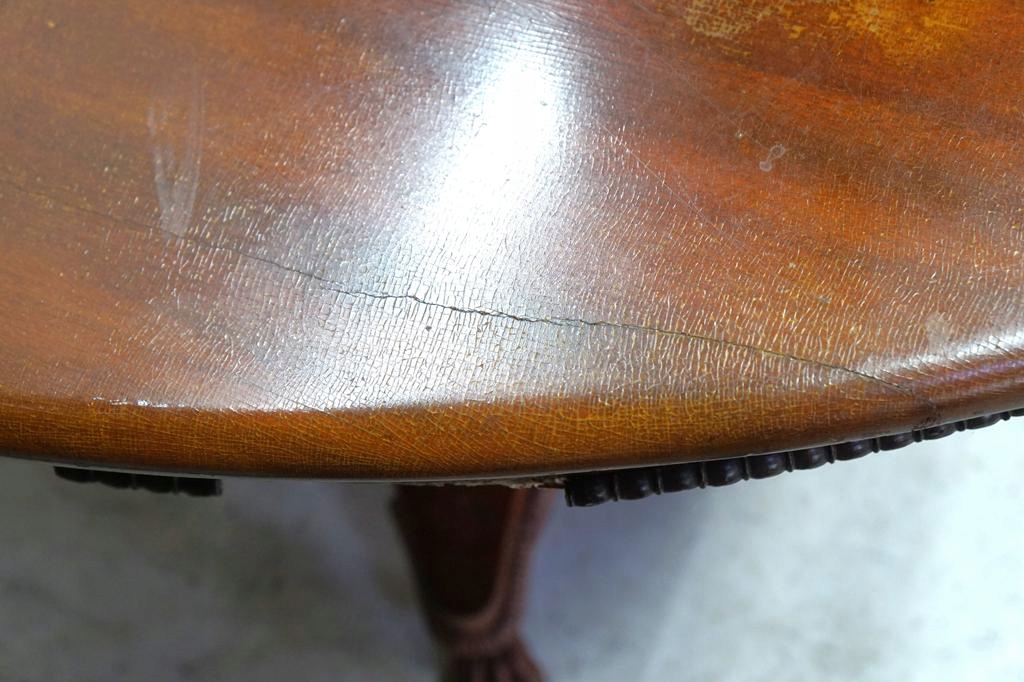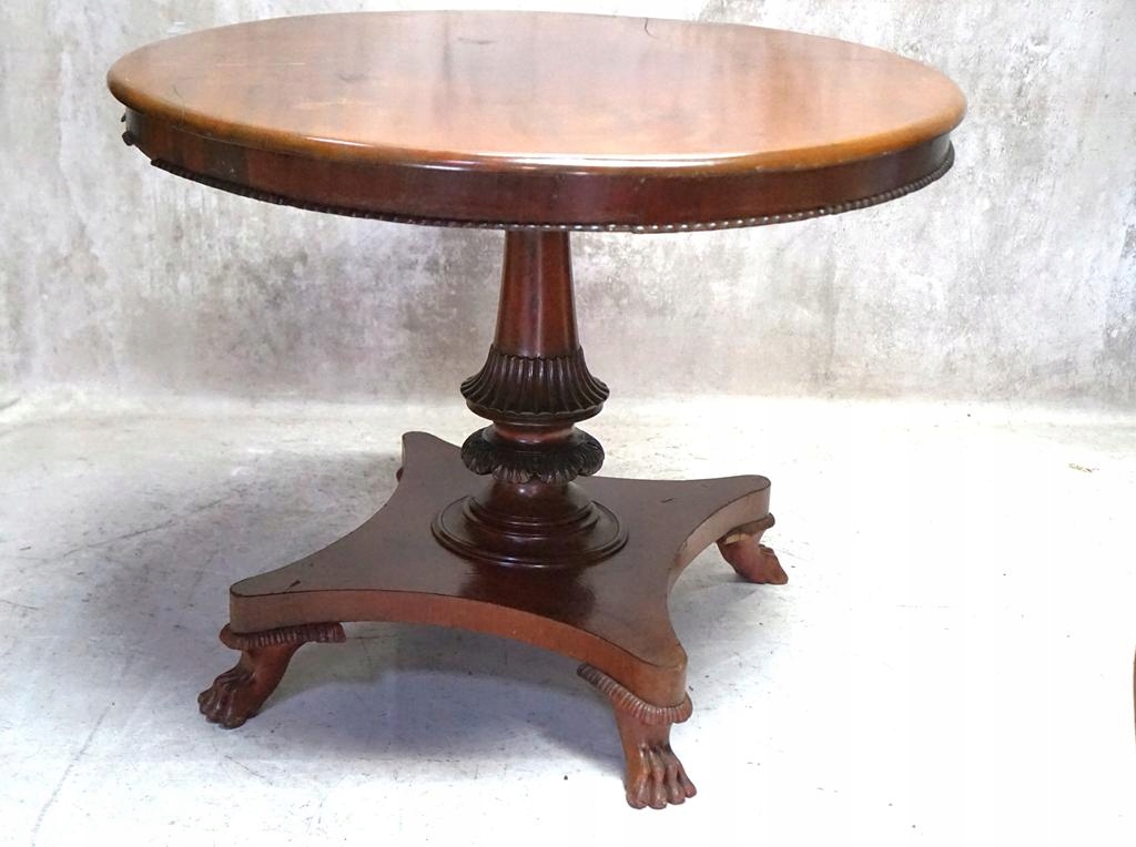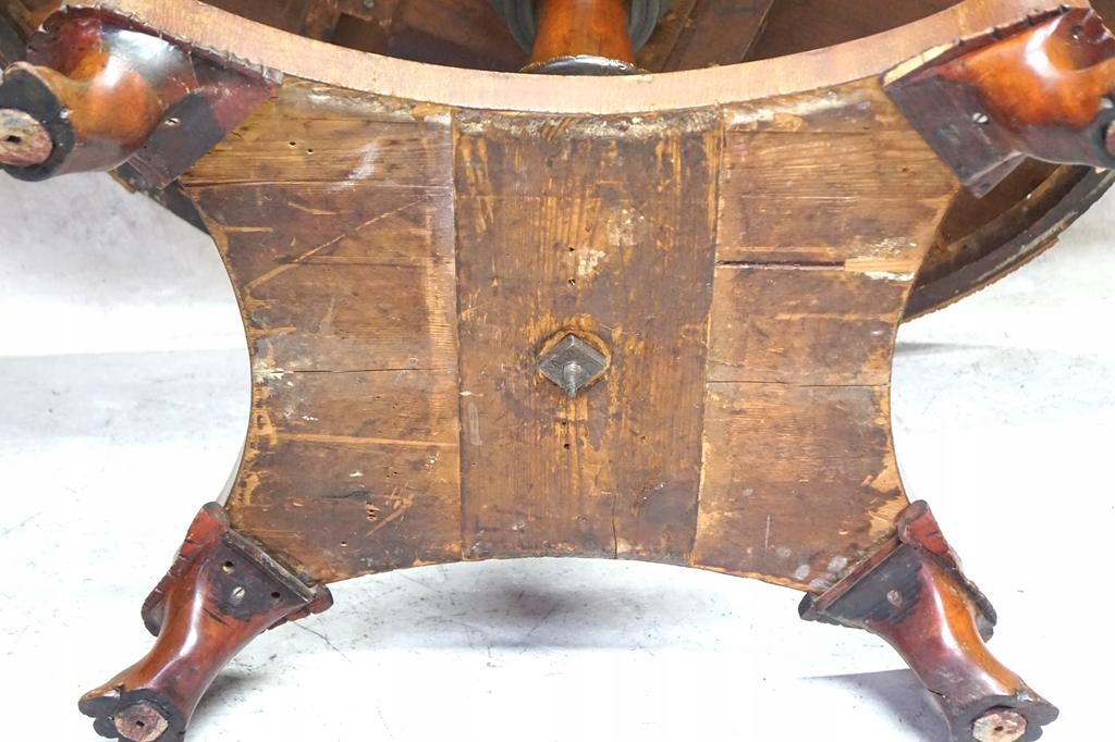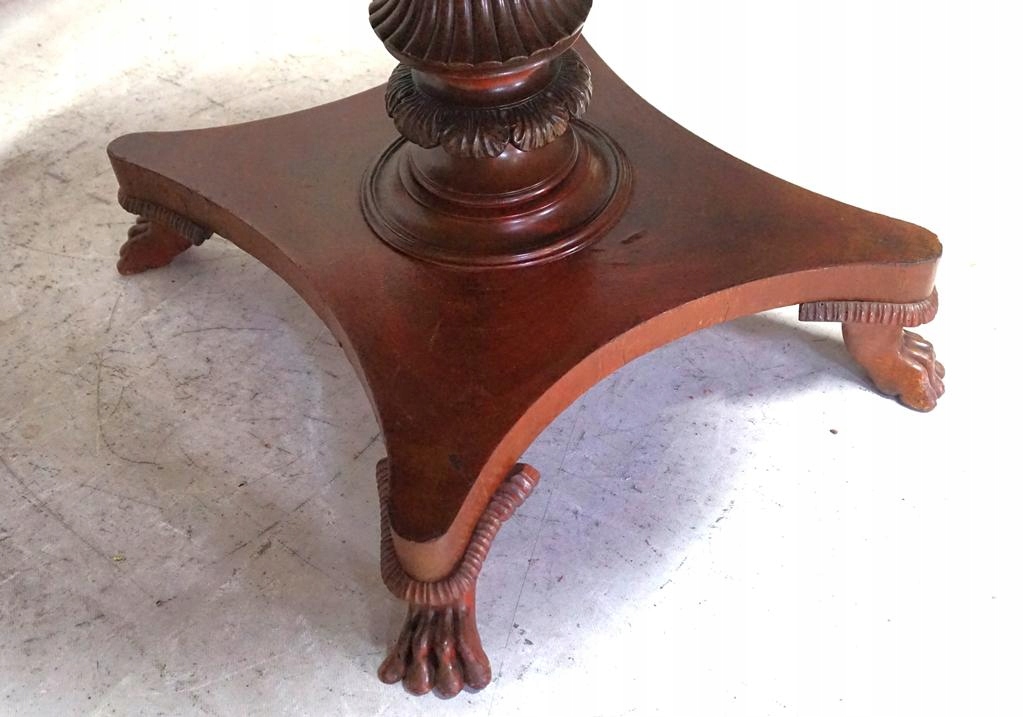 Овальна стільниця на суцільній декоративній основі з левячими лапами, що закінчуються