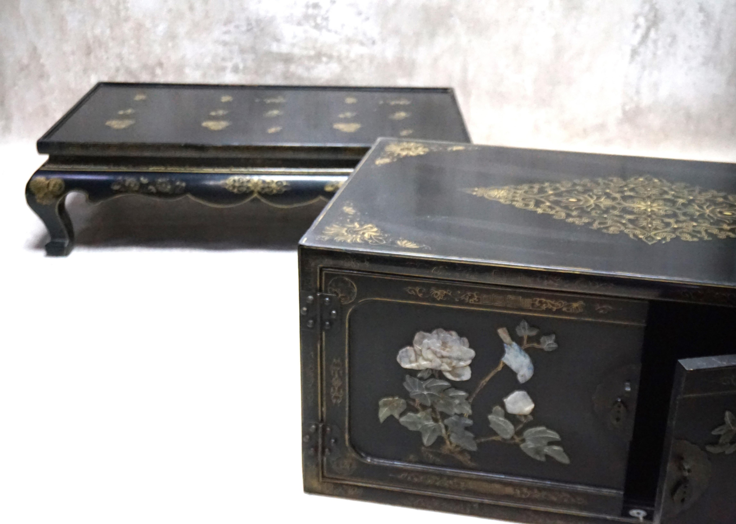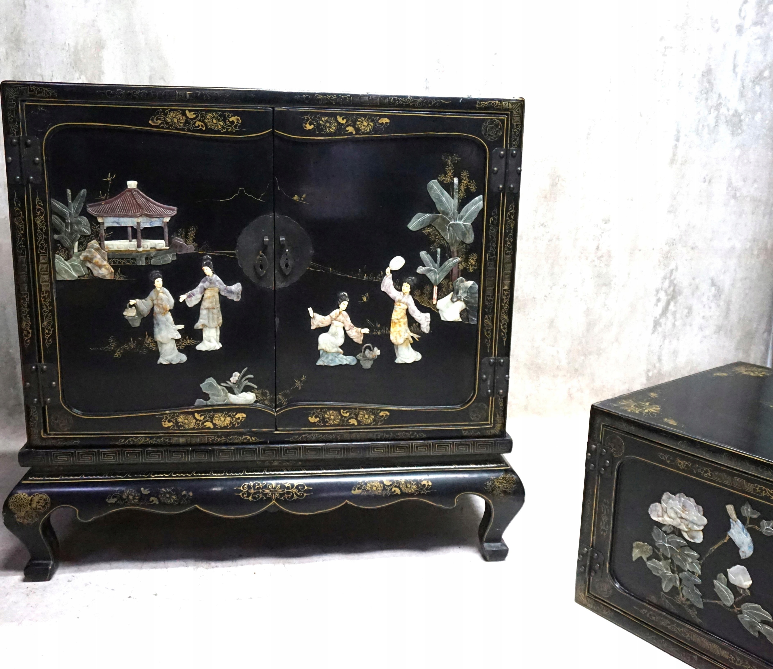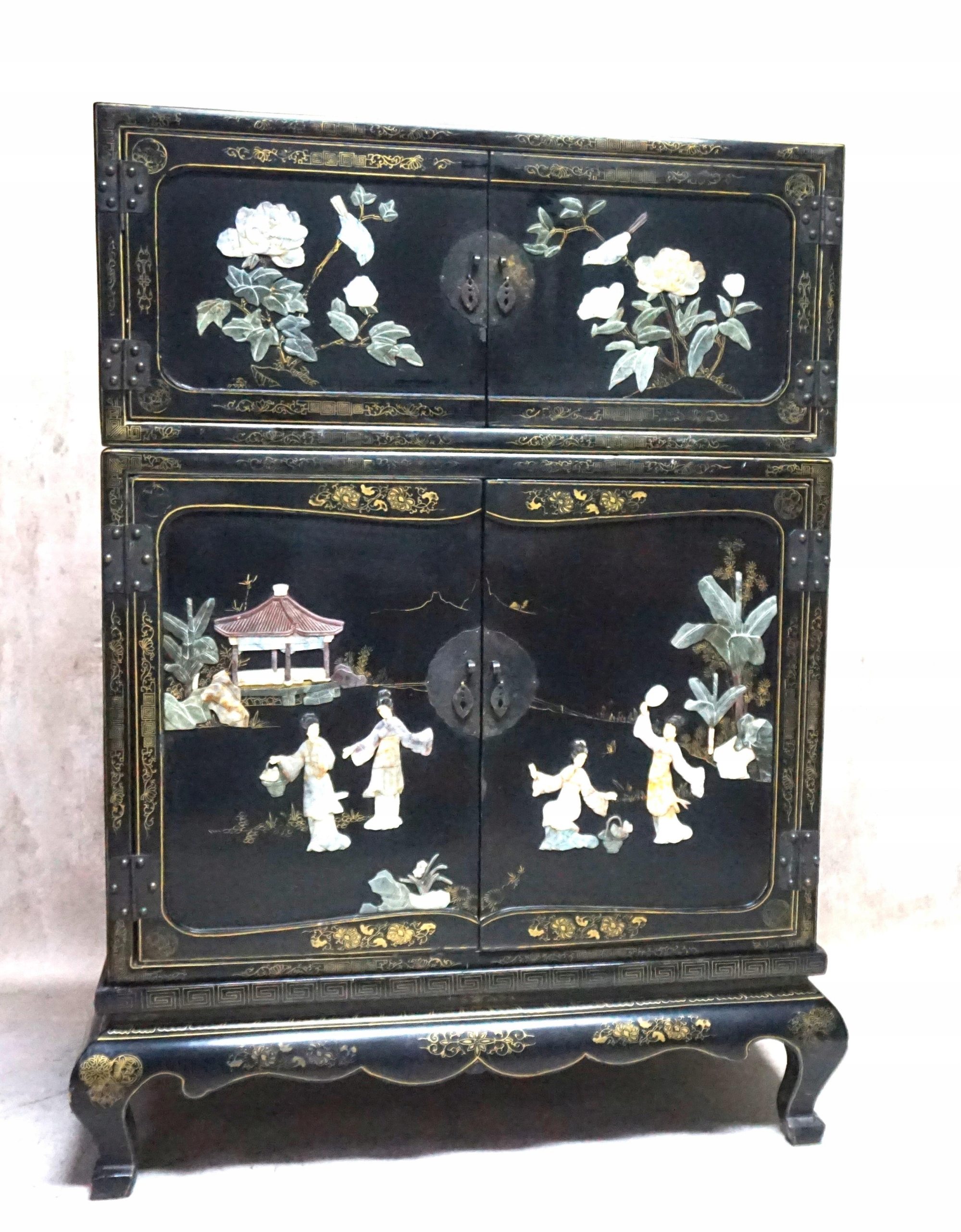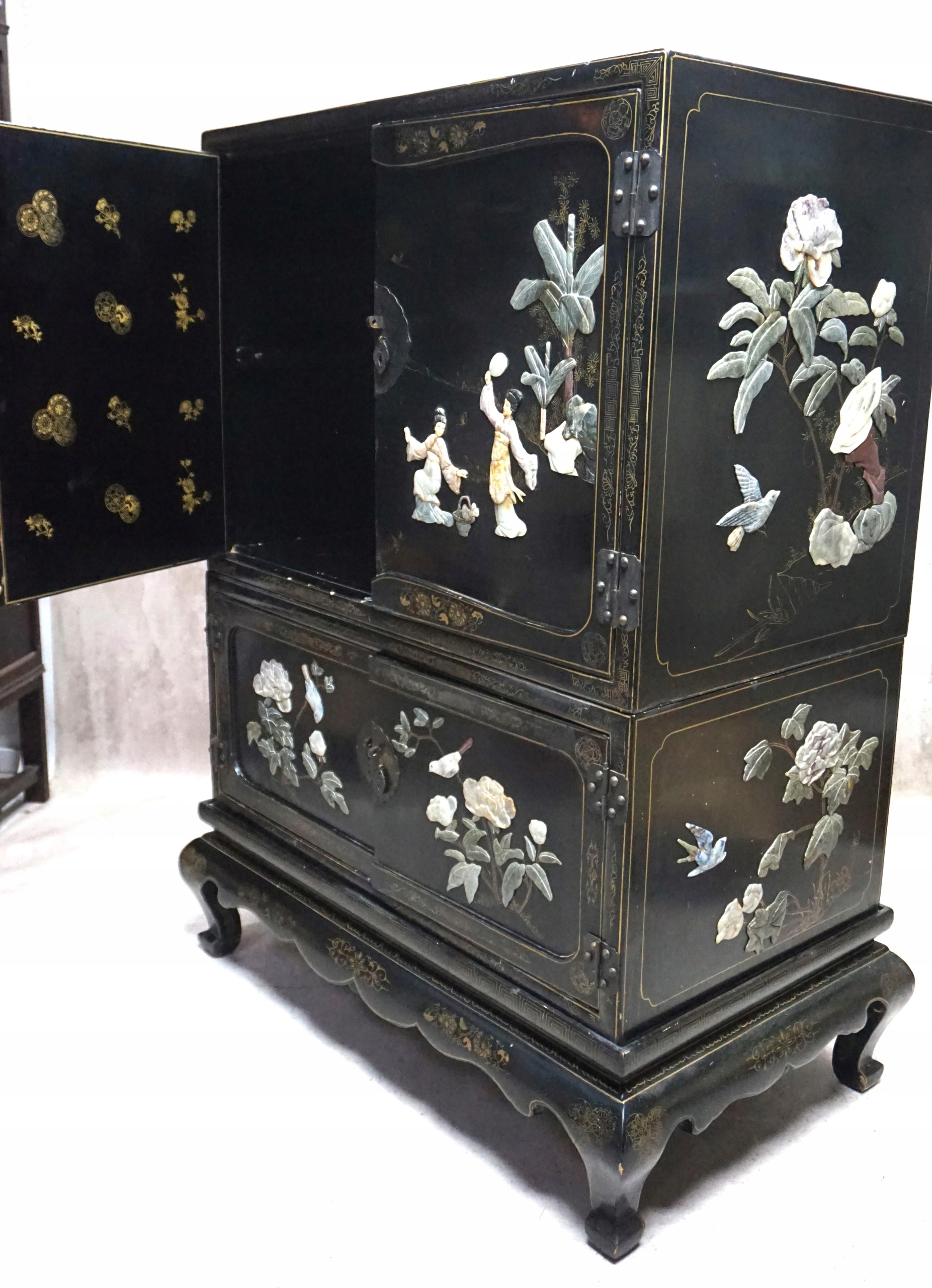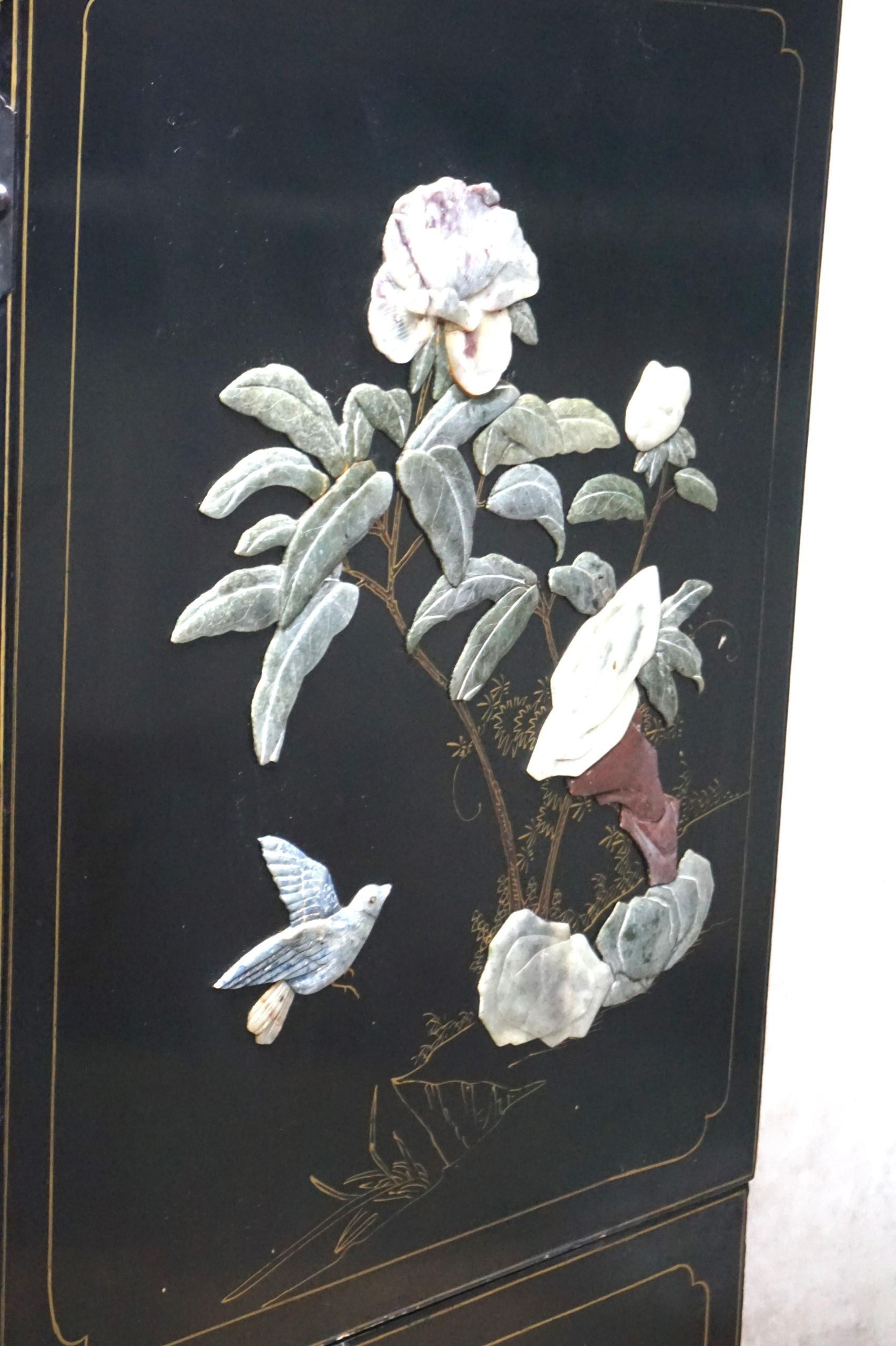 Домінуючий колір комода - чорний красиві барельєфи з нефриту та інших мінералів з позолотою.