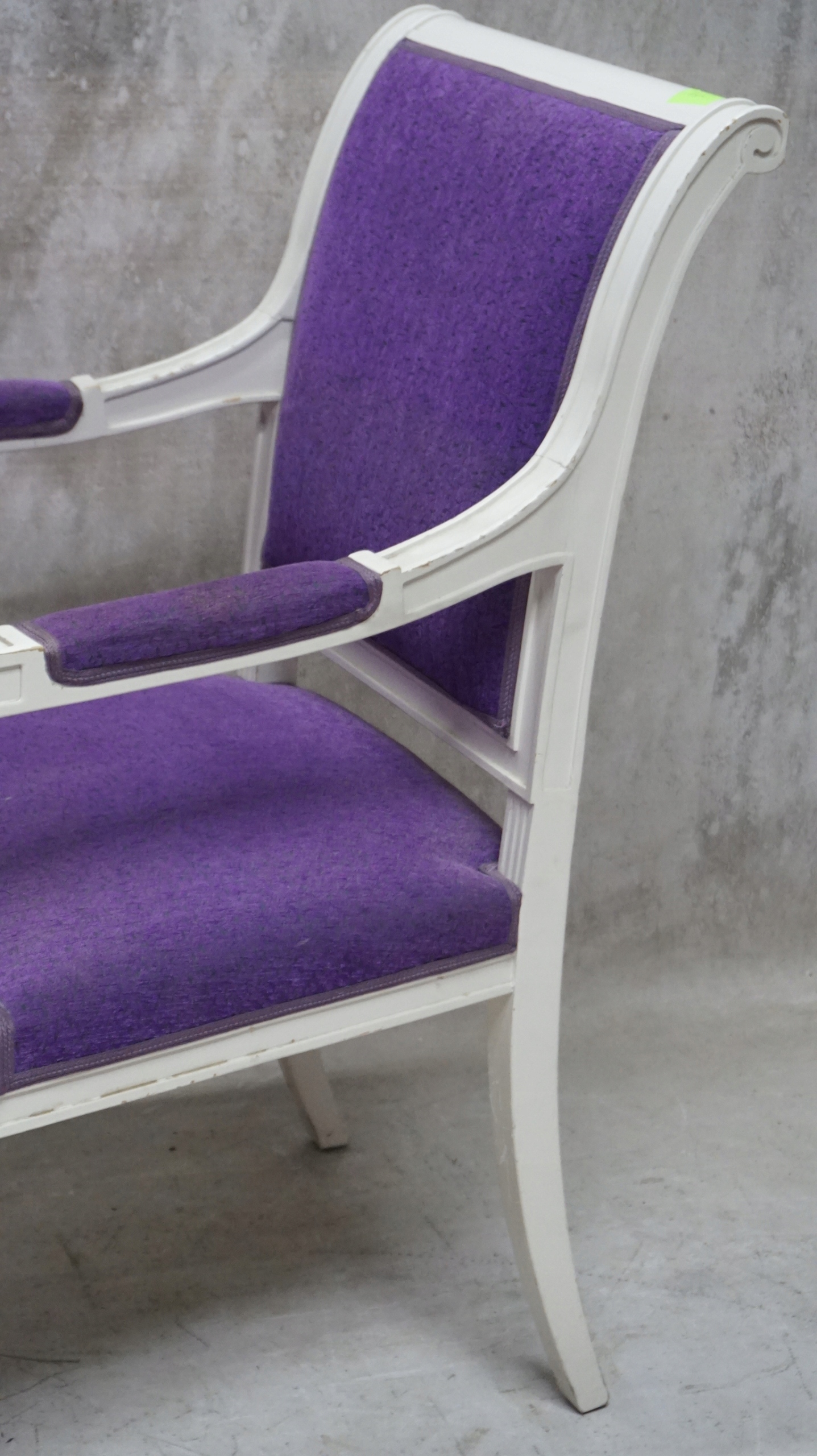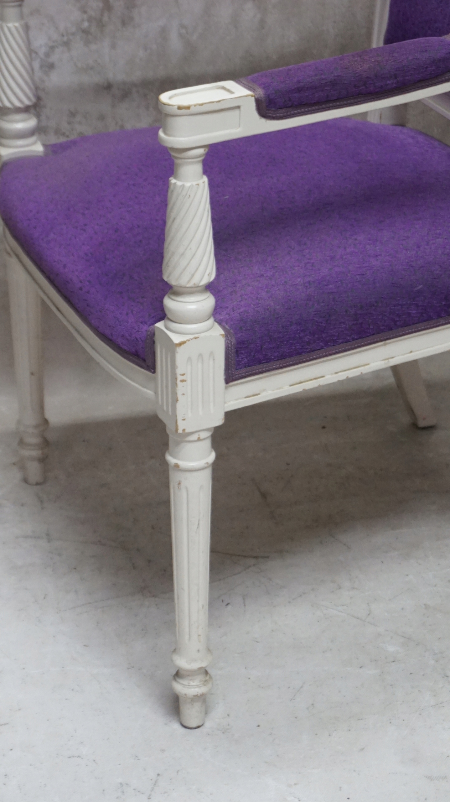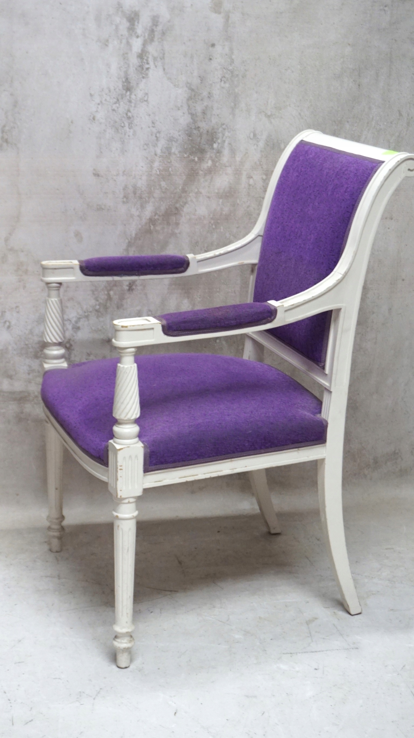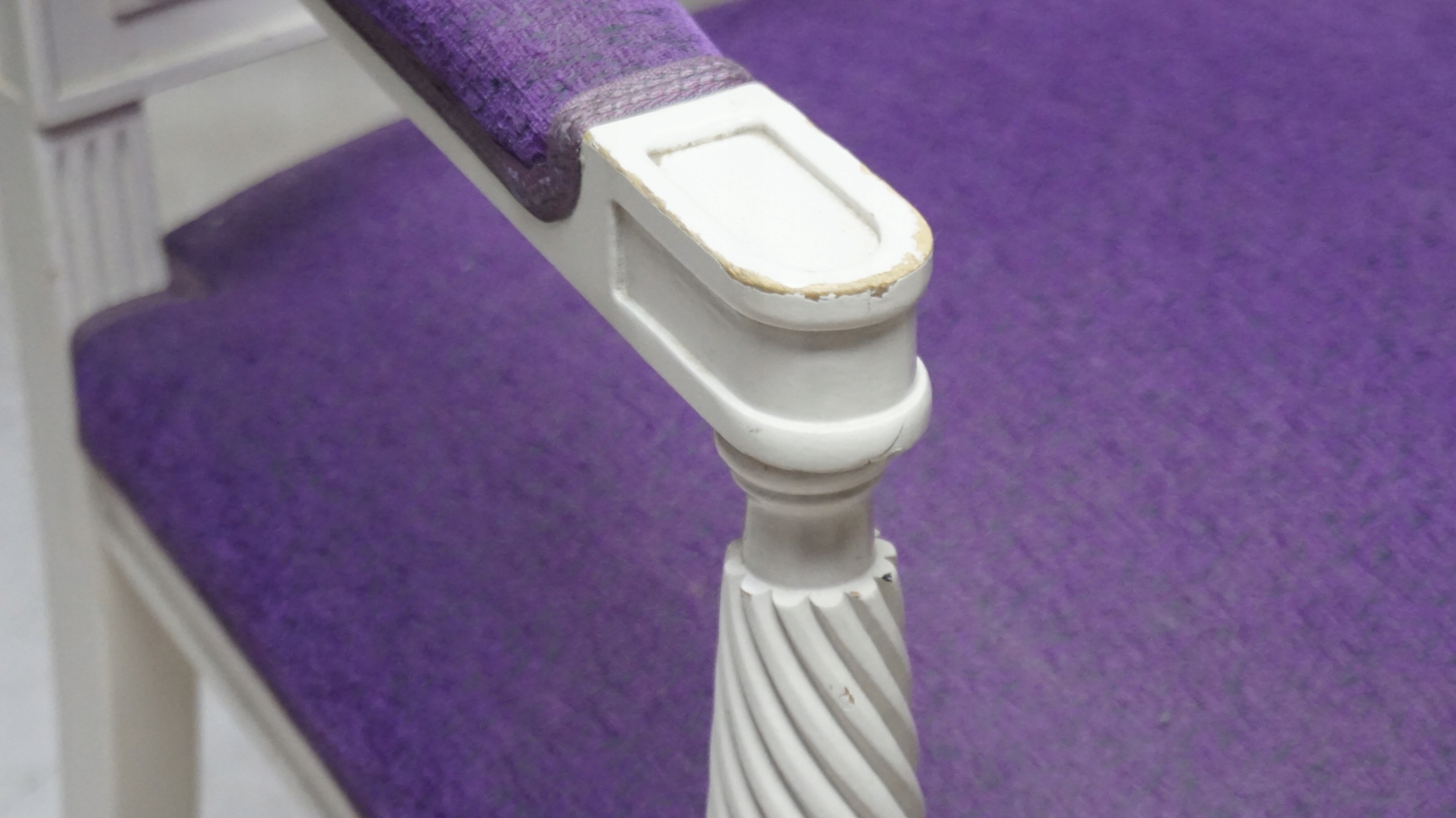 Крісло стійке, гарна оббивка фіолетового кольору без дірок, є плями, саме сидіння не сиділо на губці для косметики. освіження.