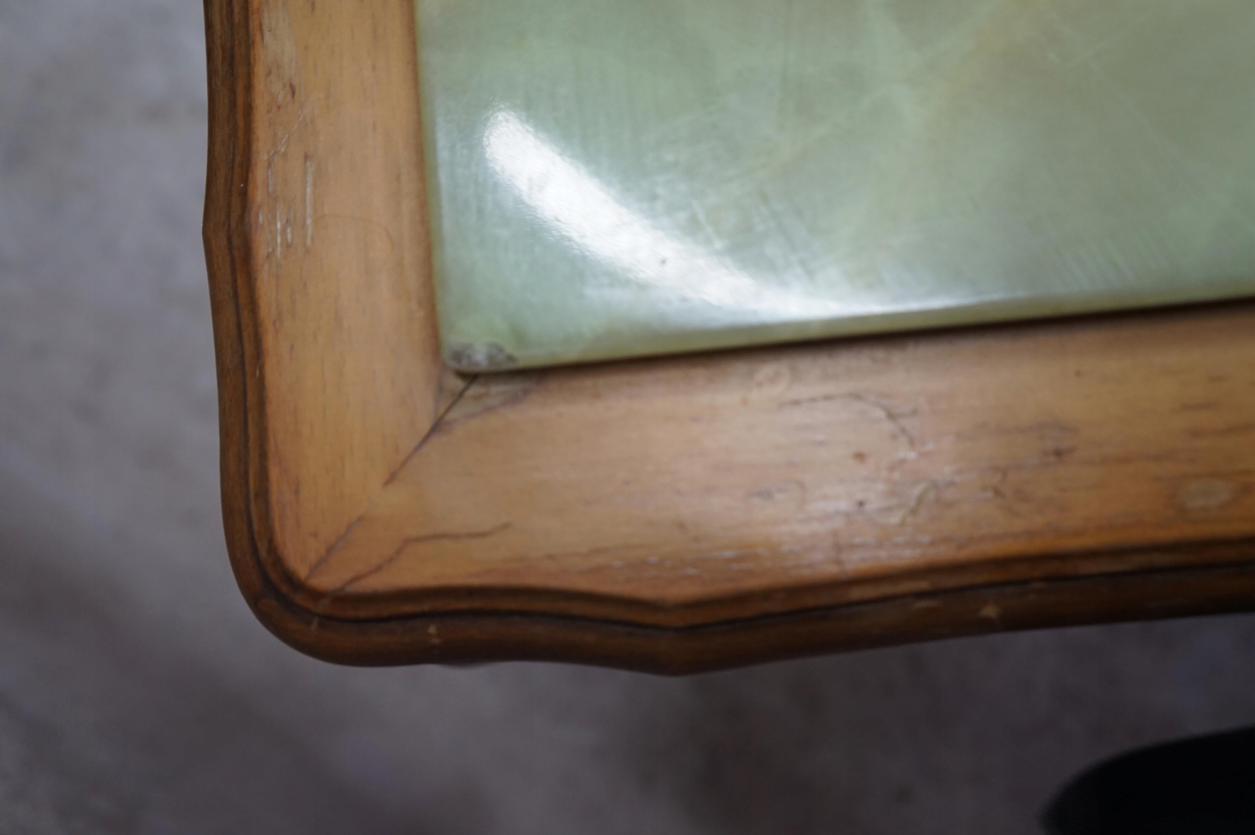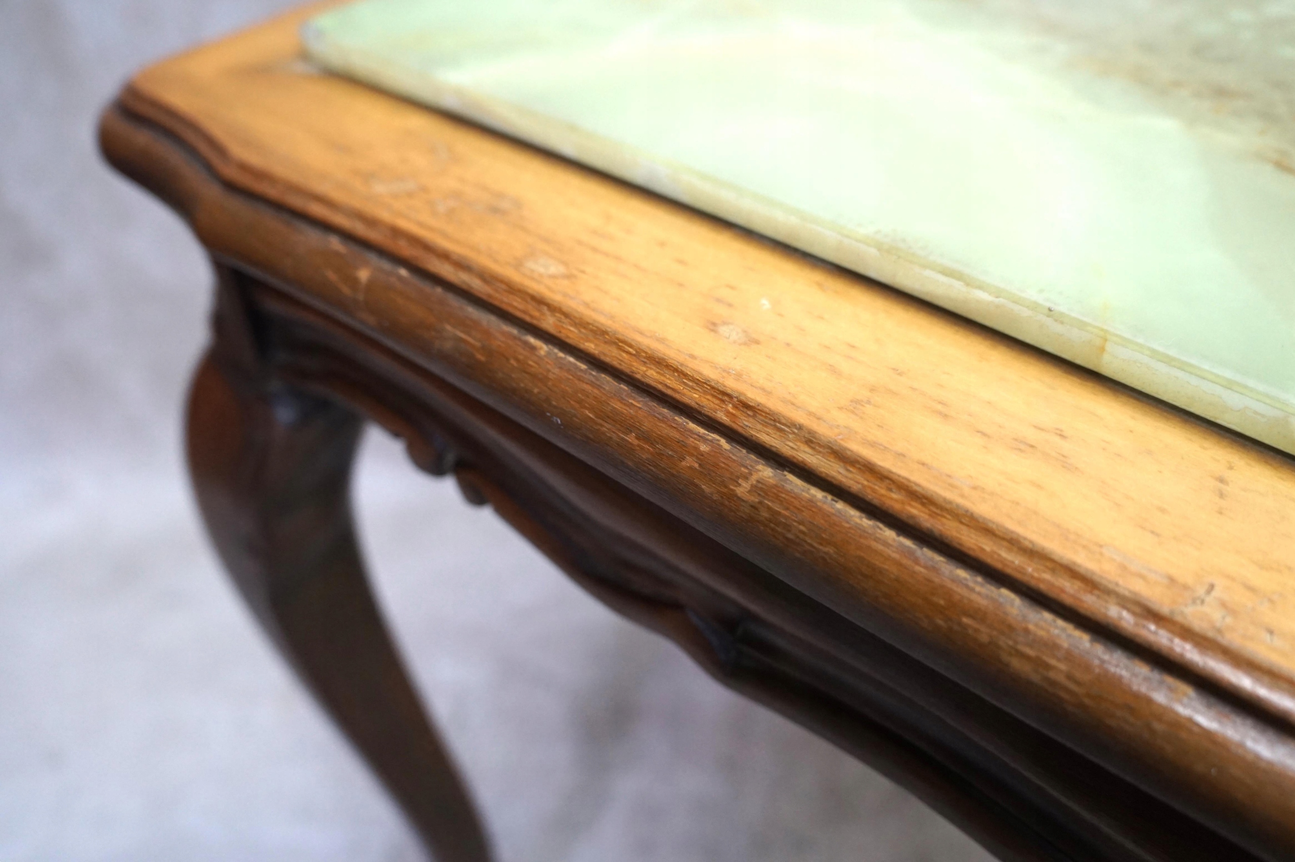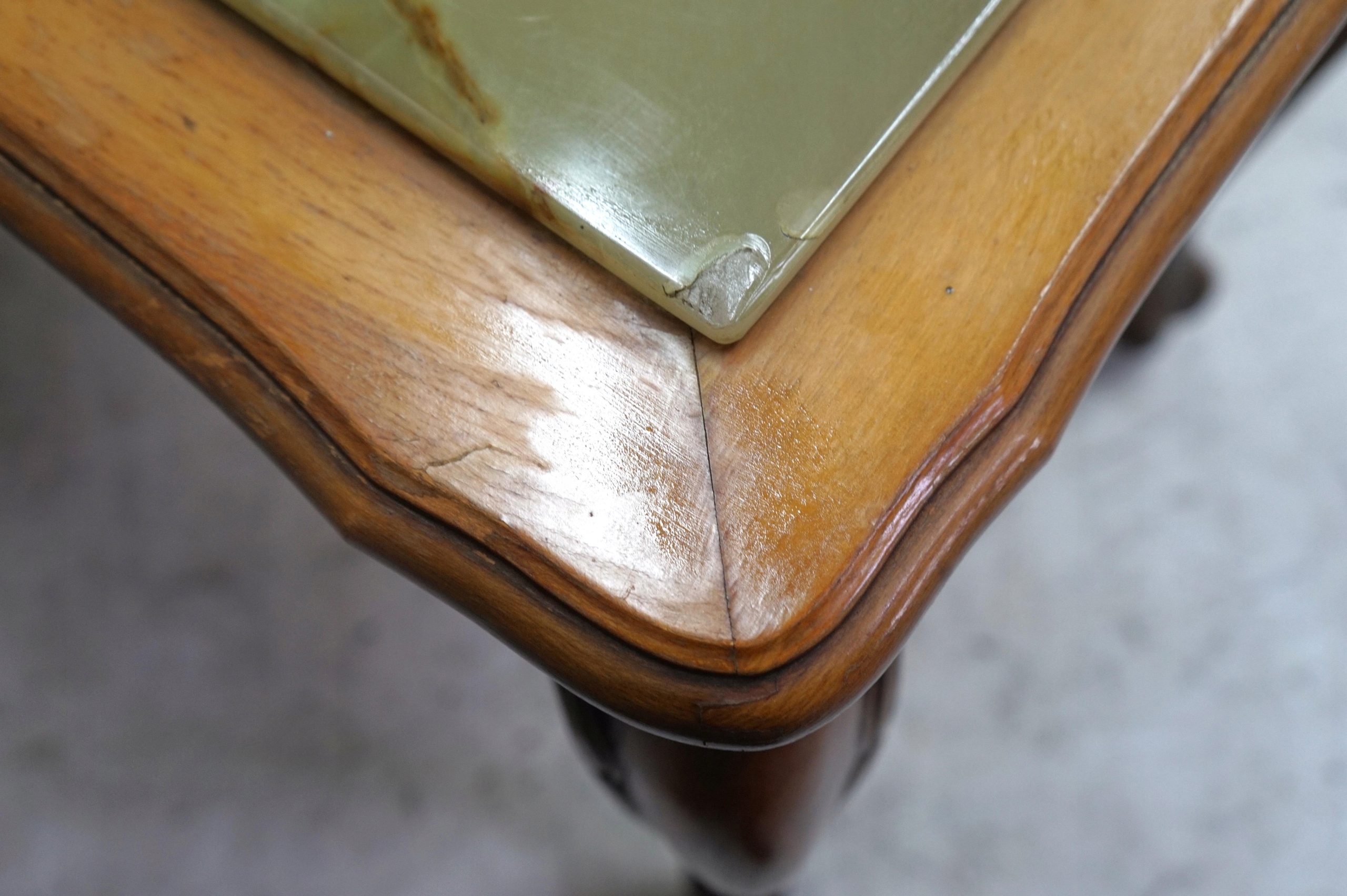 Стільниця має подряпини та невеликий скол на поверхні. кут