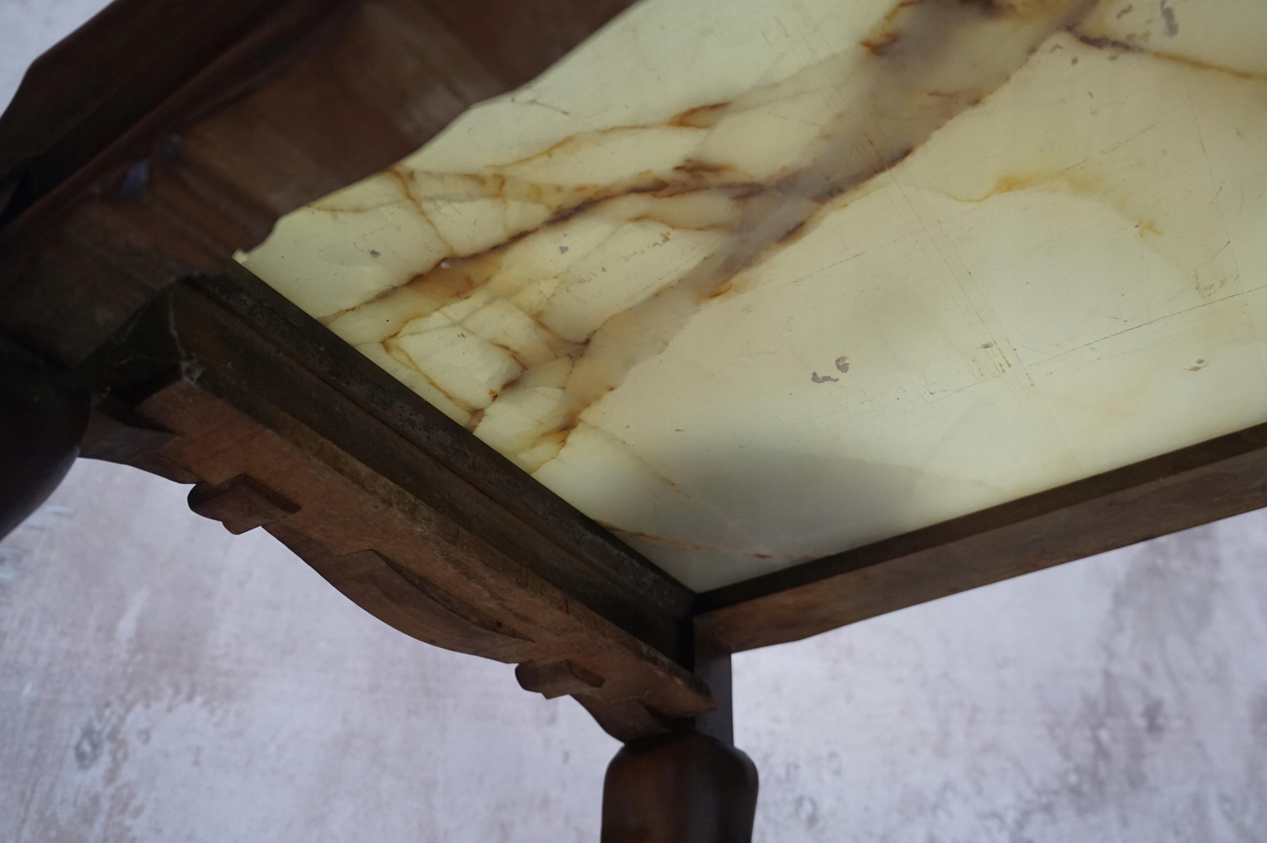 Стіл для квітів зі стільницею з оніксу, покритою смолою