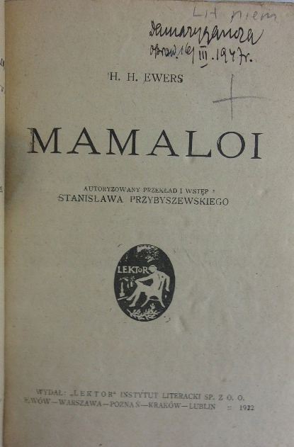 Просматривая «H. H.Ewers - Mamaloi 1922 r.» данное изделие из «Библиофильские» вы можете быть уверены, что после оформления заказа, доставки в Украину, вы получите именно то, что заказывали, в оговоренные сроки и европейского качества.