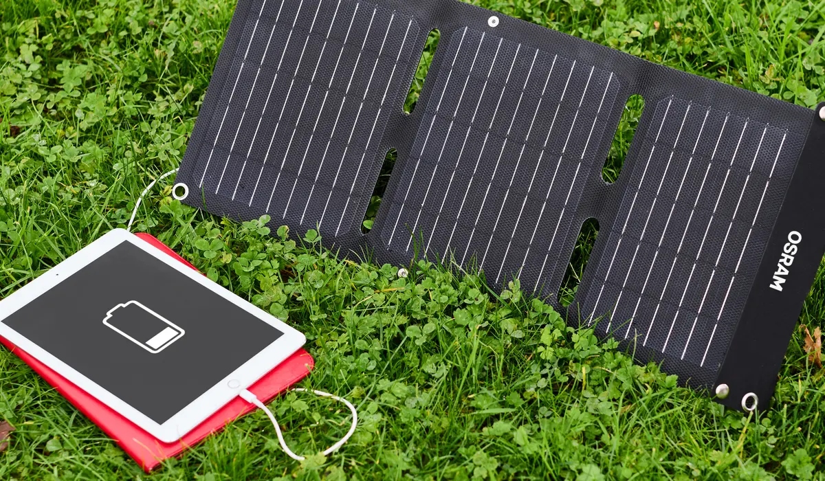 Компактна складна сонячна панель для заряджання пристроїв без доступу до електромережіOSRAM BATTERYcharge SOLAR 20W — це компактна складна сонячна панель, призначена для живлення ваших пристроїв поза межами доступу до електромережі. Оснащений монокристалічними сонячними панелями в міцному водонепроникному корпусі (IP65), він забезпечує до 20 Вт безкоштовної сонячної енергії — ідеально підходить для заряджання телефонів, планшетів і ноутбуків через порти USB-C і USB-A (5 В, 2,4 A). Легкий, вагою лише 0,8 кг, розкладається за кілька секунд і має вбудована підставка для оптимального перебування на сонці. Світлодіодний індикатор показує стан зарядки, а пристрій працює навіть у похмурі дні. Простий у використанні, міцний і створений для пригод – ідеальний компаньйон для кемпінгу, походів і роботи поза мережею.