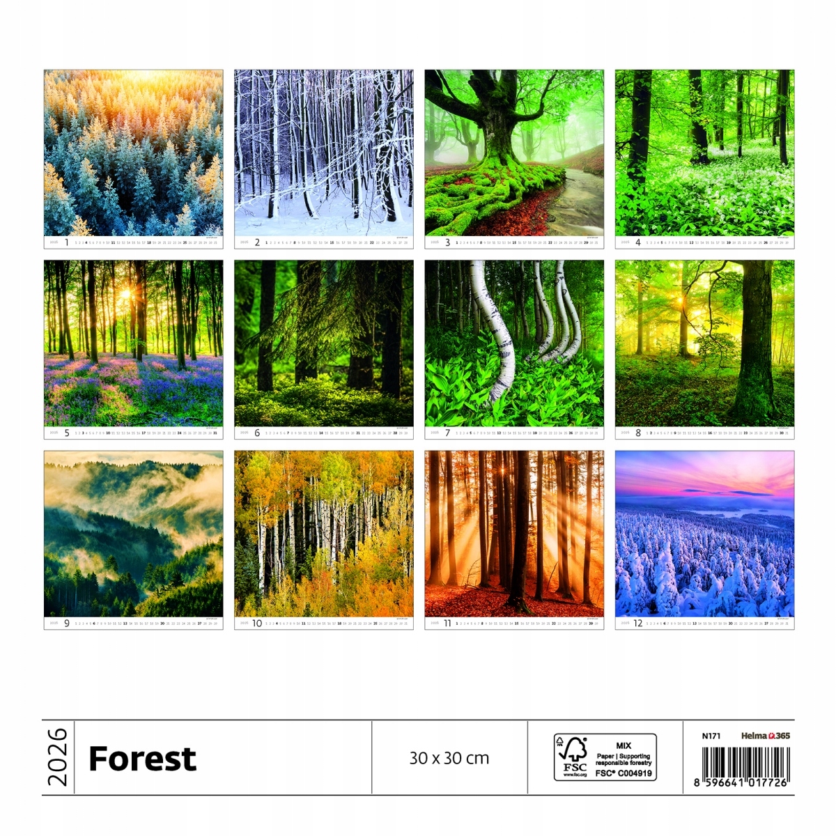 H31 Стінний календар 14-Planszowy 30x30 см ліс 2026 з друком логотипу