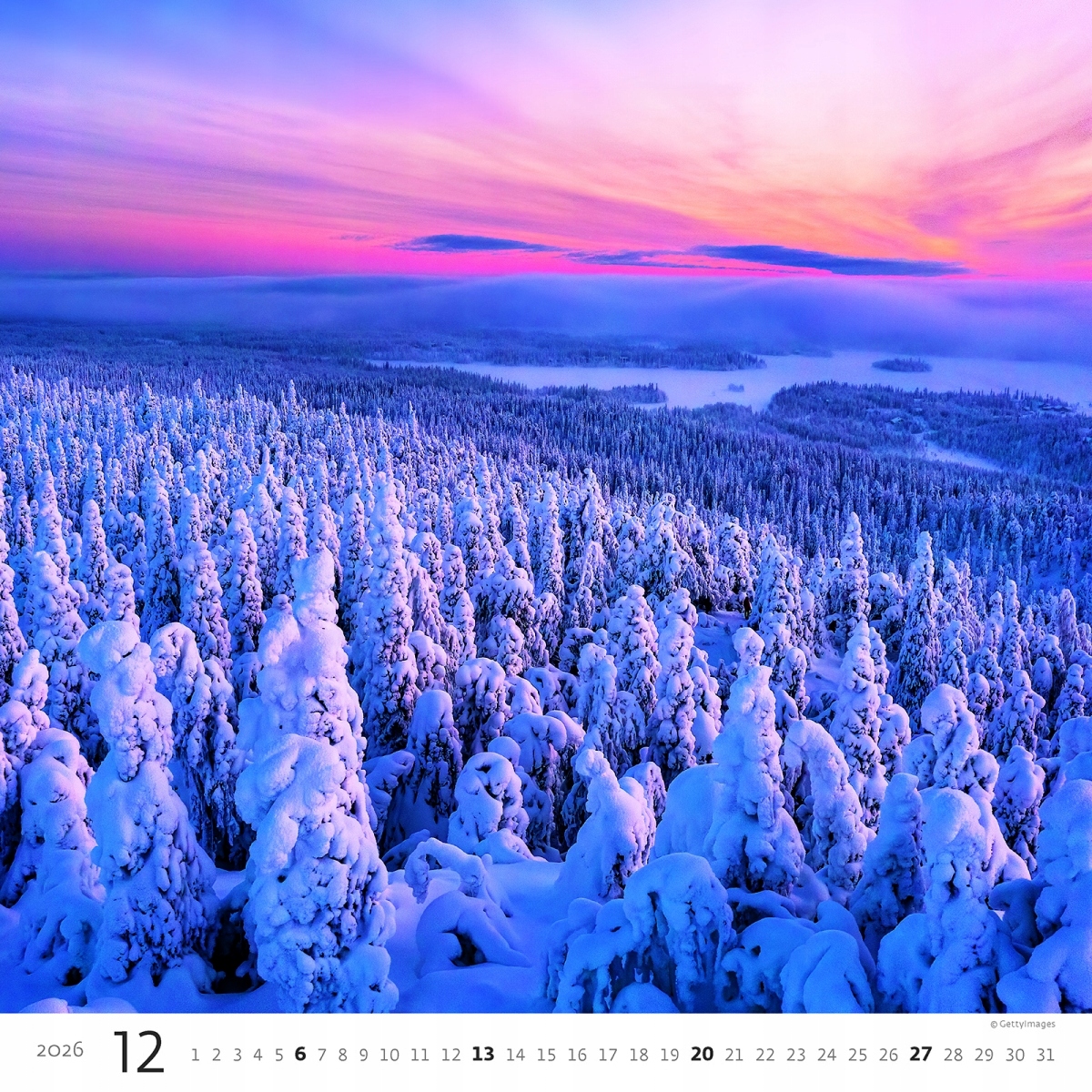 Прекрасний настінний календар, ідеально підходить для подарунка. Великий формат - дошки 30 х 30 см. Обкладинка та 12 місяців на окремих дошках, надрукованих по одній (інша сторона календарних карт біла). Ексклюзивний сертифікований документ FSC. Білі картонні посилення спини. Металевий кулон. Подарункова сумка включена.