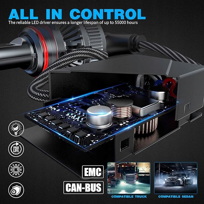 Використовуйте дизайн галогенного променя 1:1 і ультратонку мідну пластину, щоб забезпечити освітлення на 360° без чорних плям. 6000K білий, приблизно на 400% яскравіший за стандартні галогенні лампи, тож ви можете чітко бачити далі на дорозі, покращуйте нічне бачення.