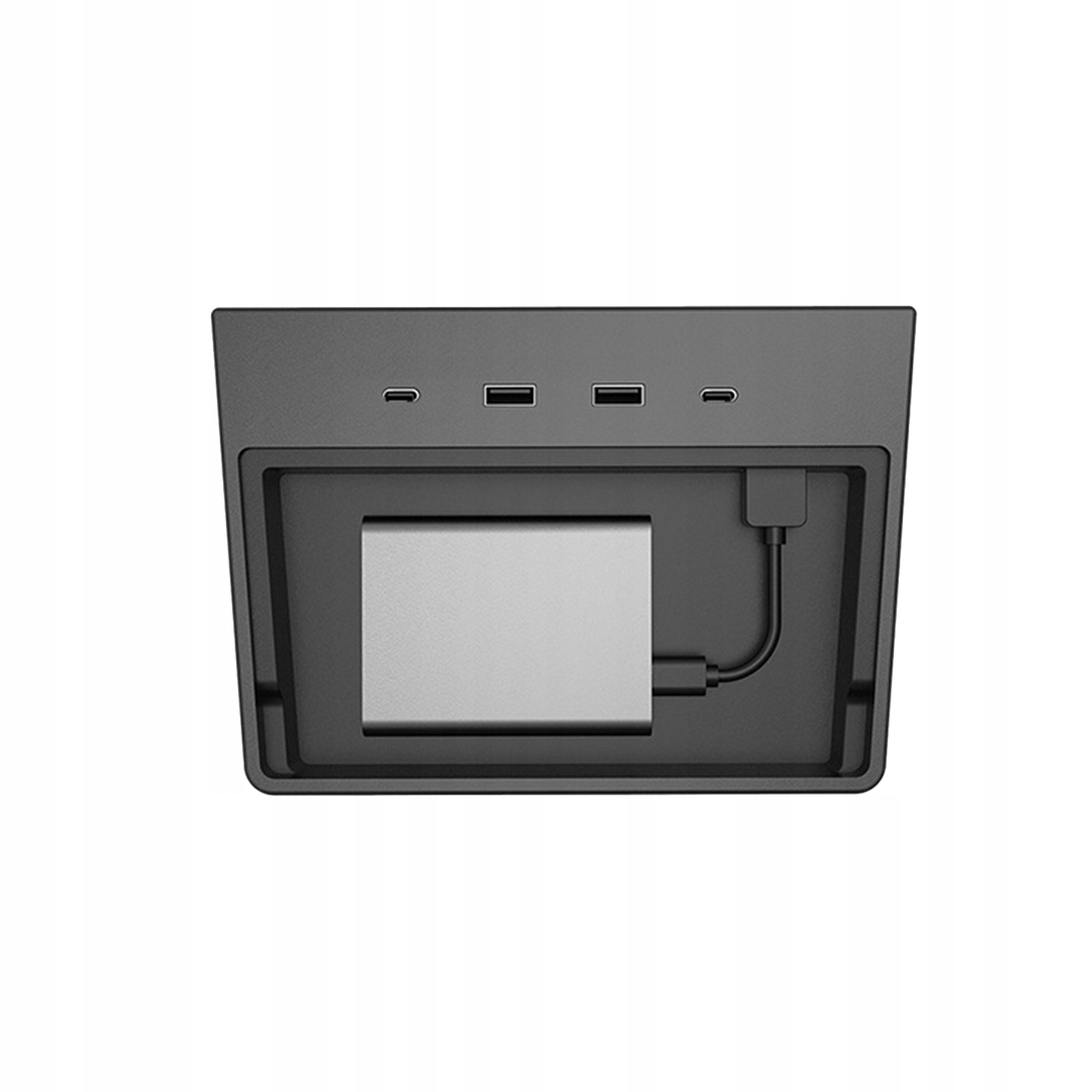 Функція: 1. Це дозволяє використовувати максимум п’ять різних пристроїв зарядки та даних. Два роз'єми USB та два з'єднувачі USB-C. Додатковий вертикальний роз'єм USB-A розташований у спеціальній камері для зберігання дизайнерської камери.