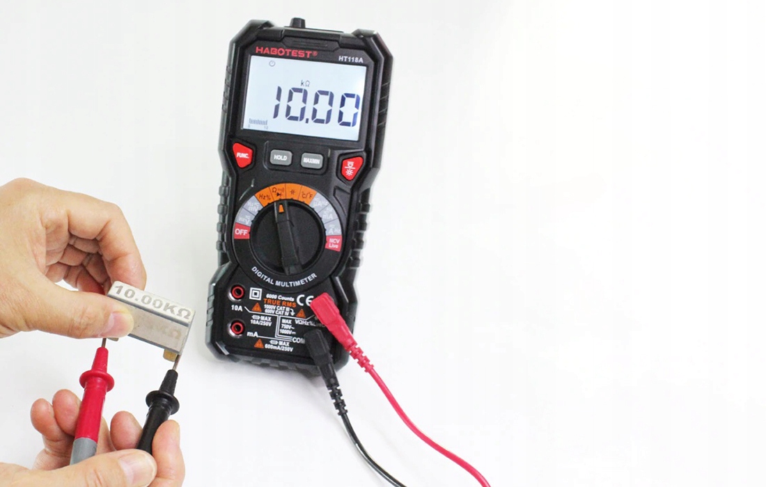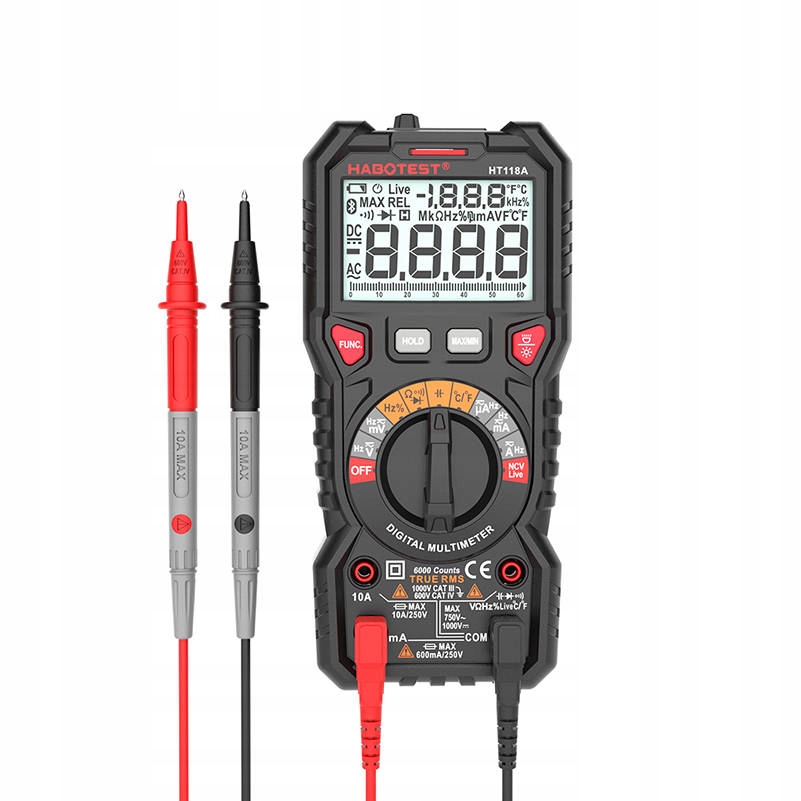 HT118A має багато корисних функцій. За допомогою нього ви можете вимірювати, серед іншого, змінну та постійну напругу, ємність і температуру в діапазоні від -40°C до 1000°C. Ви також перевірите, чи провід знаходиться під напругою, і перевірте безперервність. Однак це ще не кінець можливостей! Лічильник також дозволяє безконтактне вимірювання напруги (NCV).