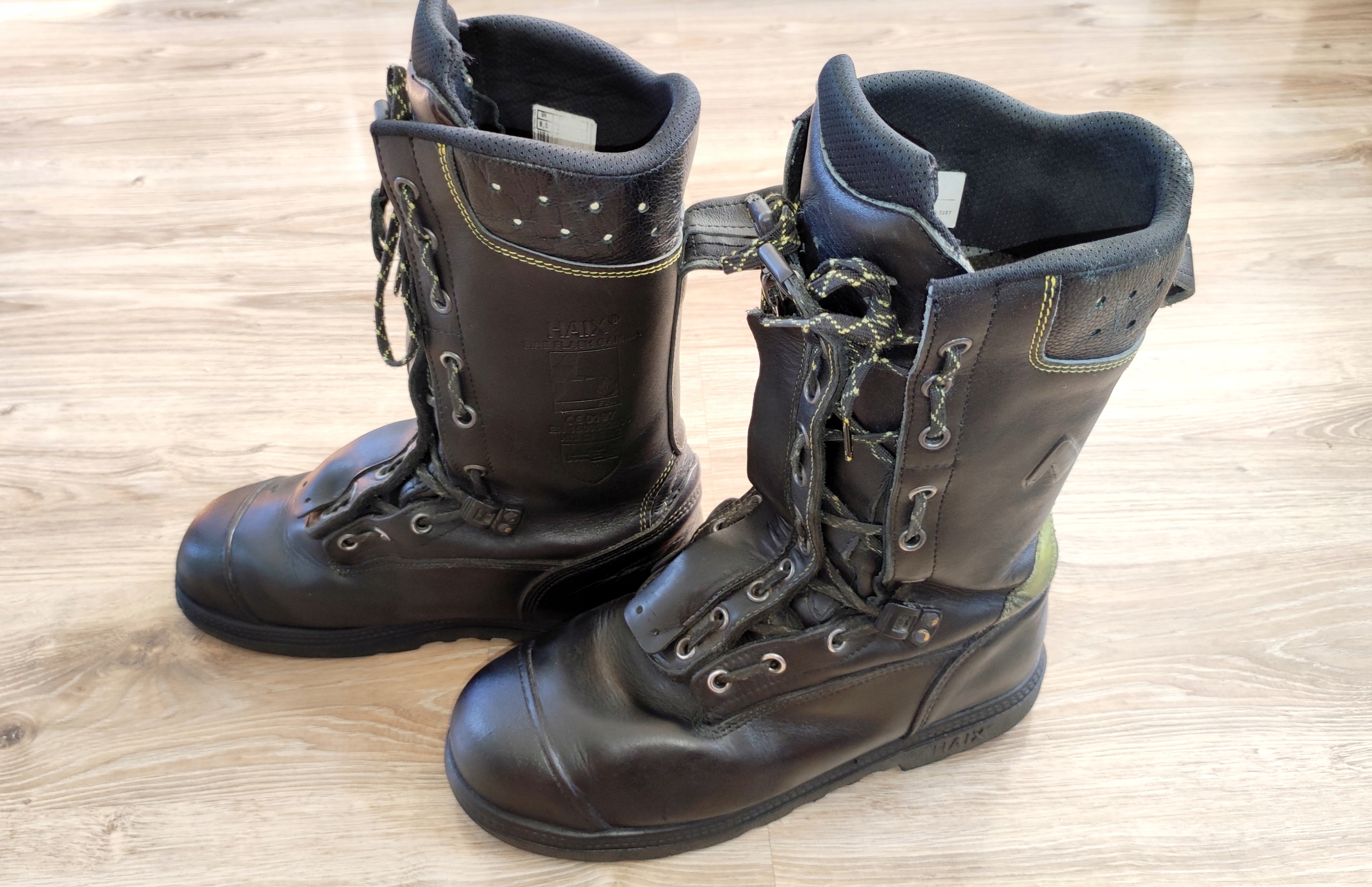 Haix Fire Shoes в хорошому середньому стані. Кілька пошкоджень шкіри, жодної ручки повзунка. Розміри висота-30 см, підошва довжина-32 см, довжина вставки-29,5 см (самі укладки для заміни) розміром на етикетці (44)