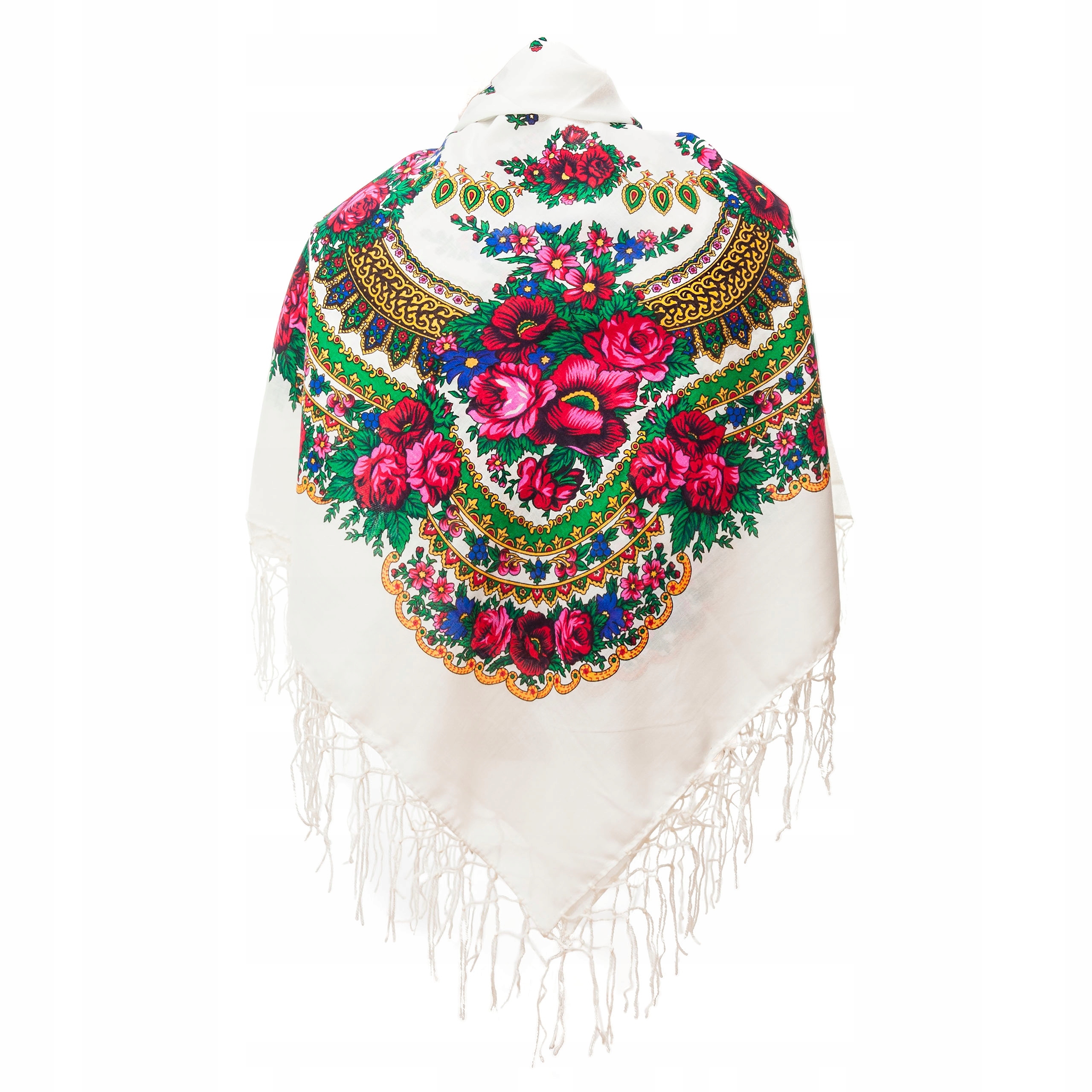 Хайлендер шарф квіти народні великі білі бахроми