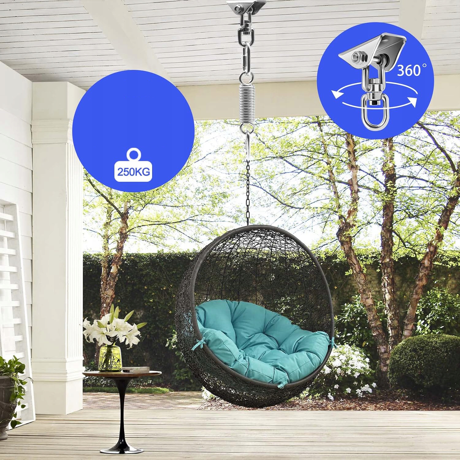 ✅【Високоякісний матеріал】 Гачки для підвішування стільців виготовлені з корозійностійкої нержавіючої сталі 304, придатні для використання в приміщенні встановлення та на відкритому повітрі, більш стабільне, плавне та безпечне кріплення, номінальна вантажопідйомність до 450 кг, підходить для дітей та дорослих. пружини розтягування з гаками, виготовлені з високоякісної оцинкованої пружинної сталі, з підвищеною твердістю та довговічністю.