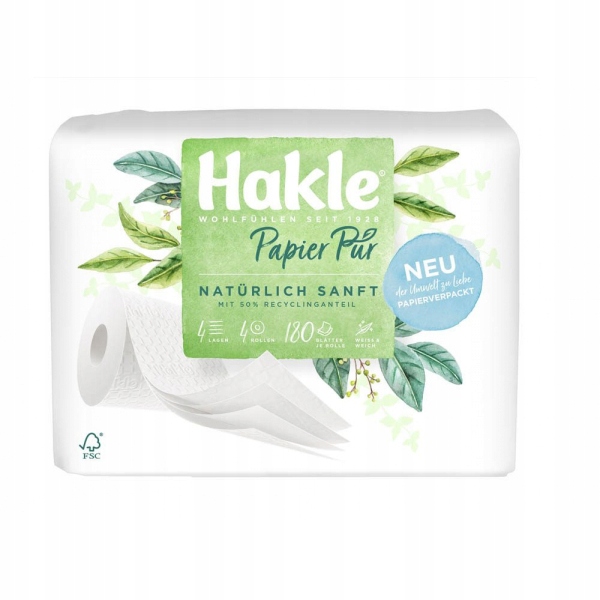 Знайомтеся з Hakle Papier Pur - надзвичайно делікатний, 4-шаровий туалетний папір преміум-класу, створений з урахуванням натуральності, комфорту та догляду за шкірою.