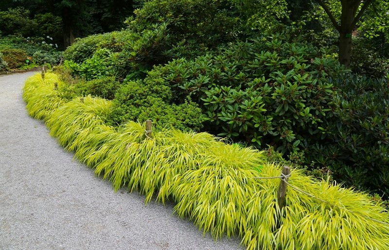 Як грунтопокривну рослину висаджують через кожні 45 см. Добре росте на березі ставка або струмка, під кронами дерев і кущів у легкій тіні, в компанії з журавлями, хостами, папоротями, таволгами, книдаріями, епімедіумом, медуницею, ілюзорією, родгерсією. Хаконехлоа - не розлога трава і не загрожує сусіднім рослинам. Ідеально підходить для бордюрів, альпінаріїв, японських садів, рустик та ін.Ця трава також красиво виглядає в контейнерах, її можна садити окремо або в композиціях з іншими рослинами.