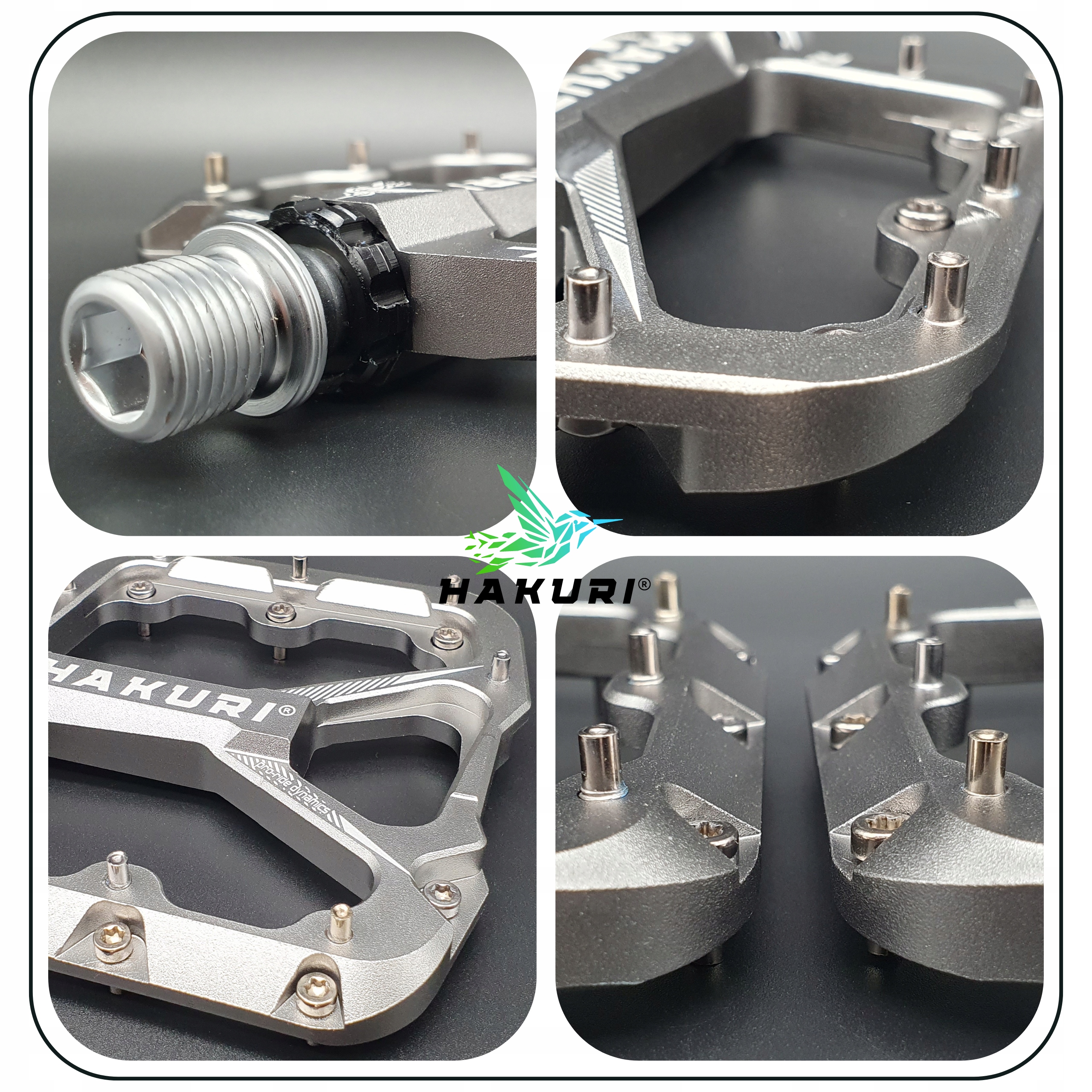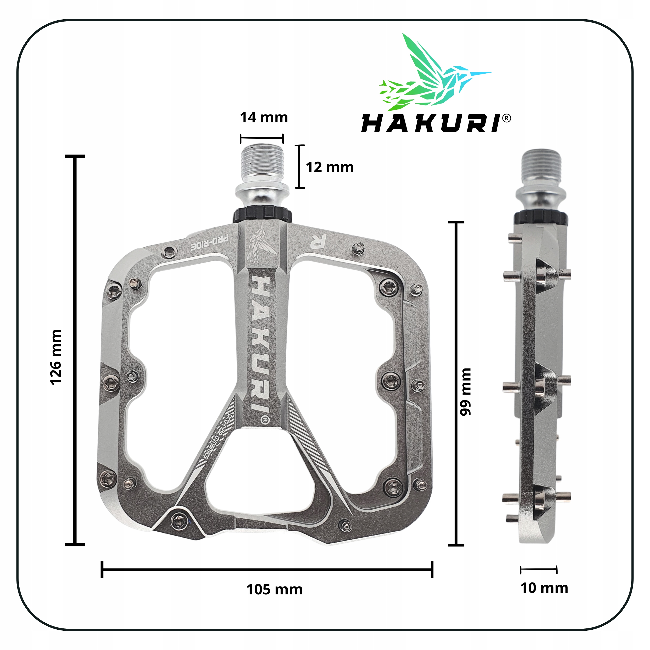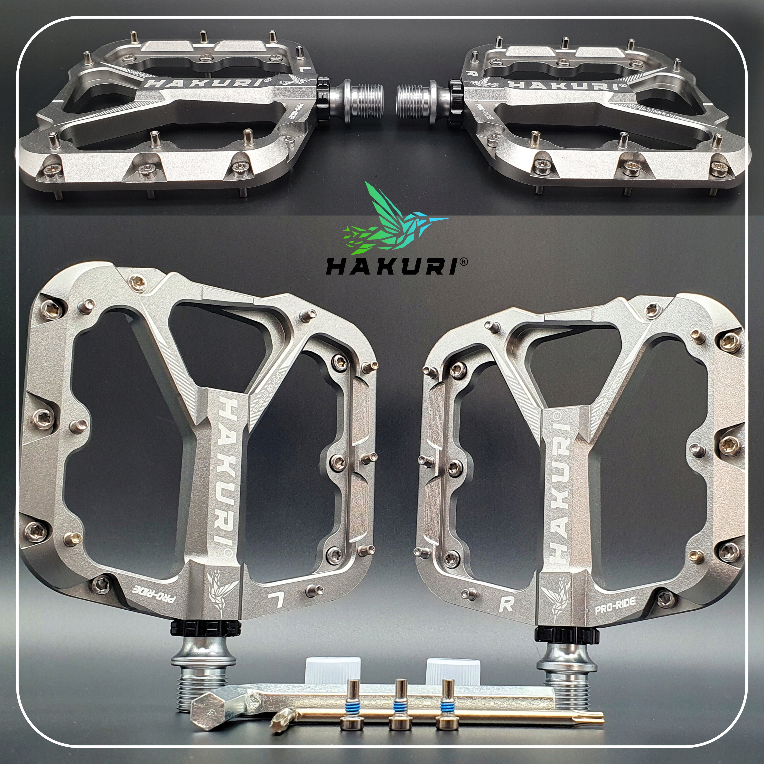 HAKURI PRO-RIDE – це педалі на платформі, призначені для катання на гірських трасах, альпіністів, ендуро, трейлів і гірських велосипедів. Виготовлений з алюмінієвого корпуса з вісьмома штифтами з кожного боку забезпечує чудову підтримку та зчеплення.