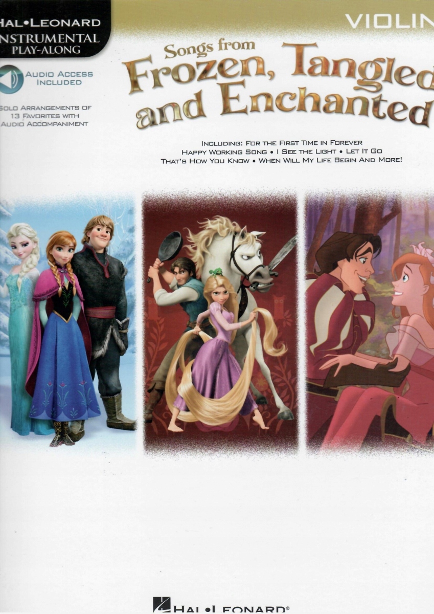 Пісні з фільмів Frozen, Tangled і Enchanted легко аранжовані для скрипки соло.