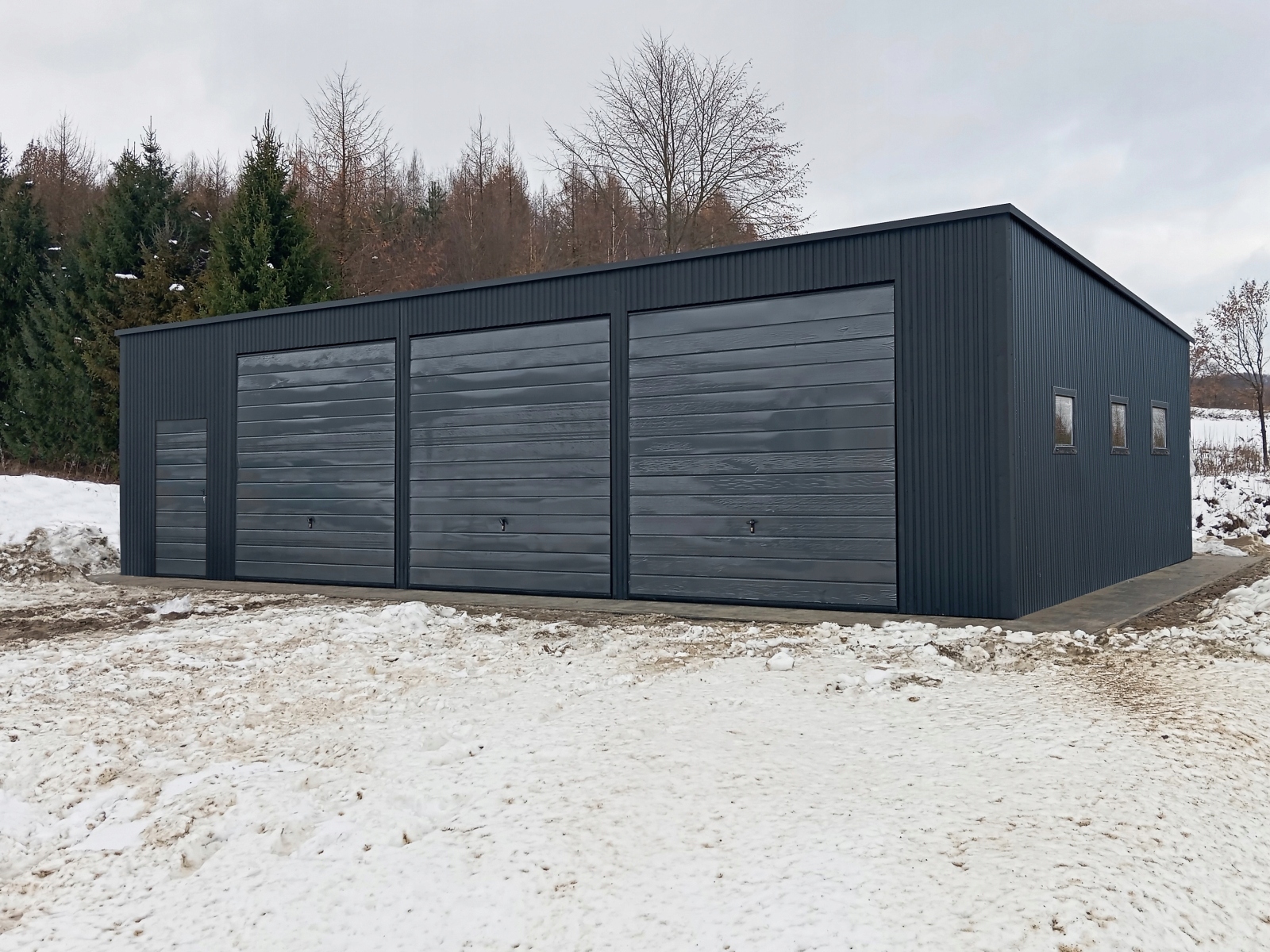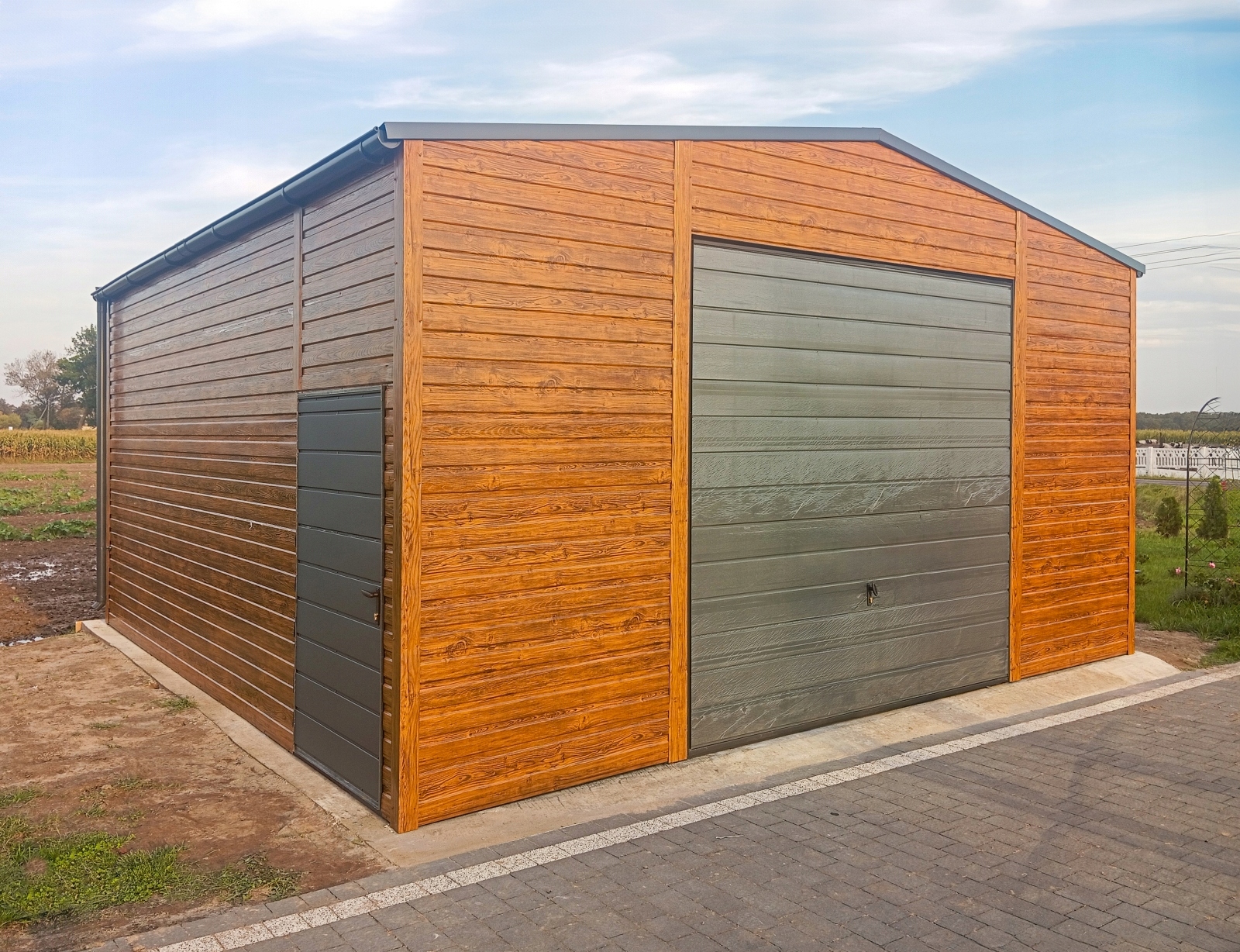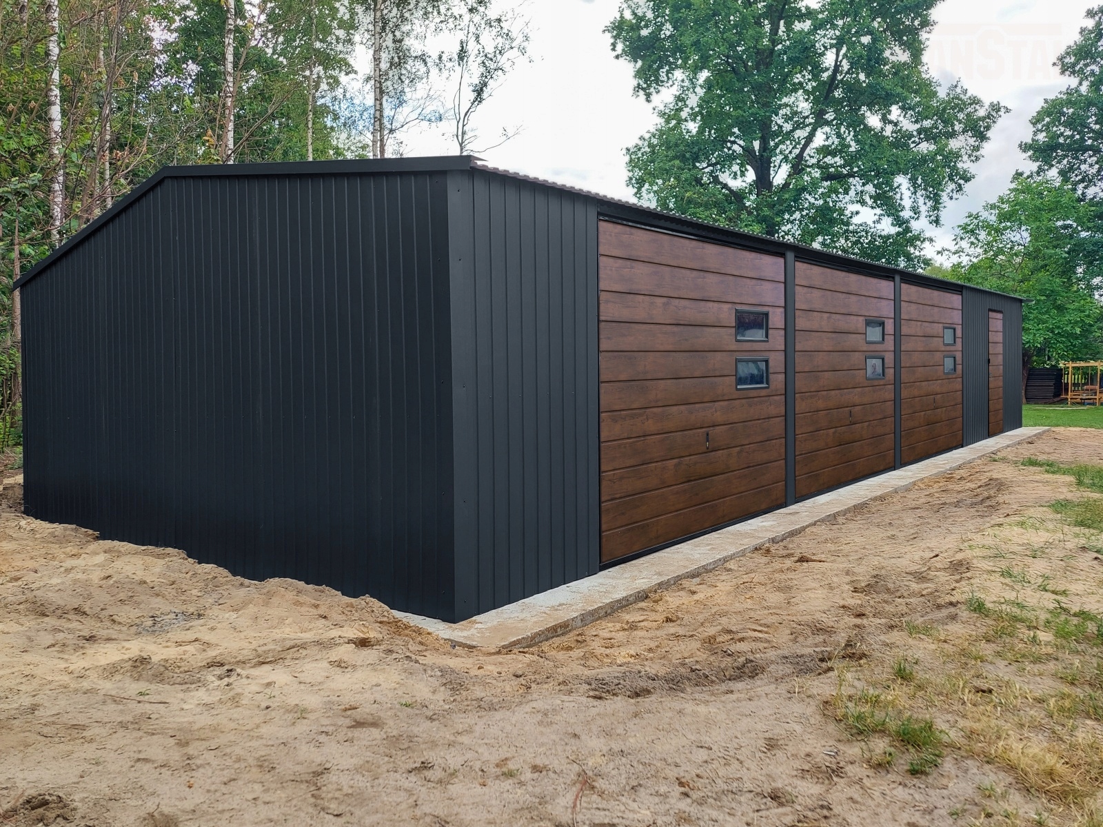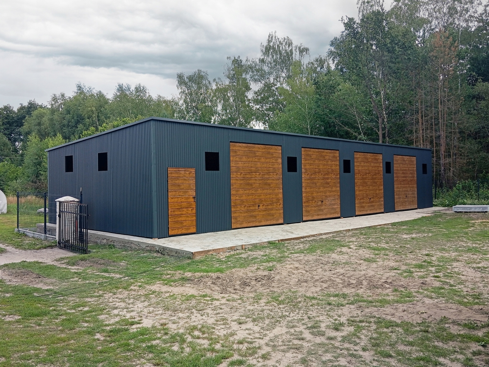 Hala blaszana / garaż 10x7 podwyższone bramy i automatyka, dwuspadowy