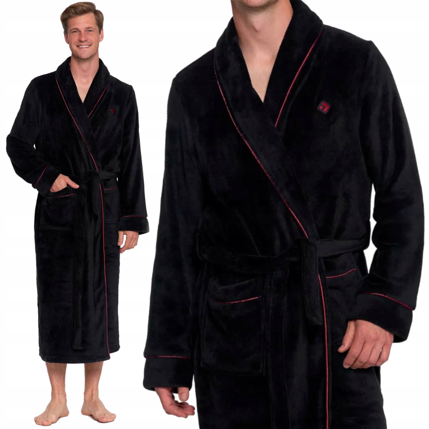 ХАЛАТ ЧОЛОВІЧИЙ ДОВГИЙ ТЕПЛИЙ ПРИВ'ЯЗАНИЙ MORAJ КОМФОРТНИЙ І ЗРУЧНИЙ ЧОРНИЙ