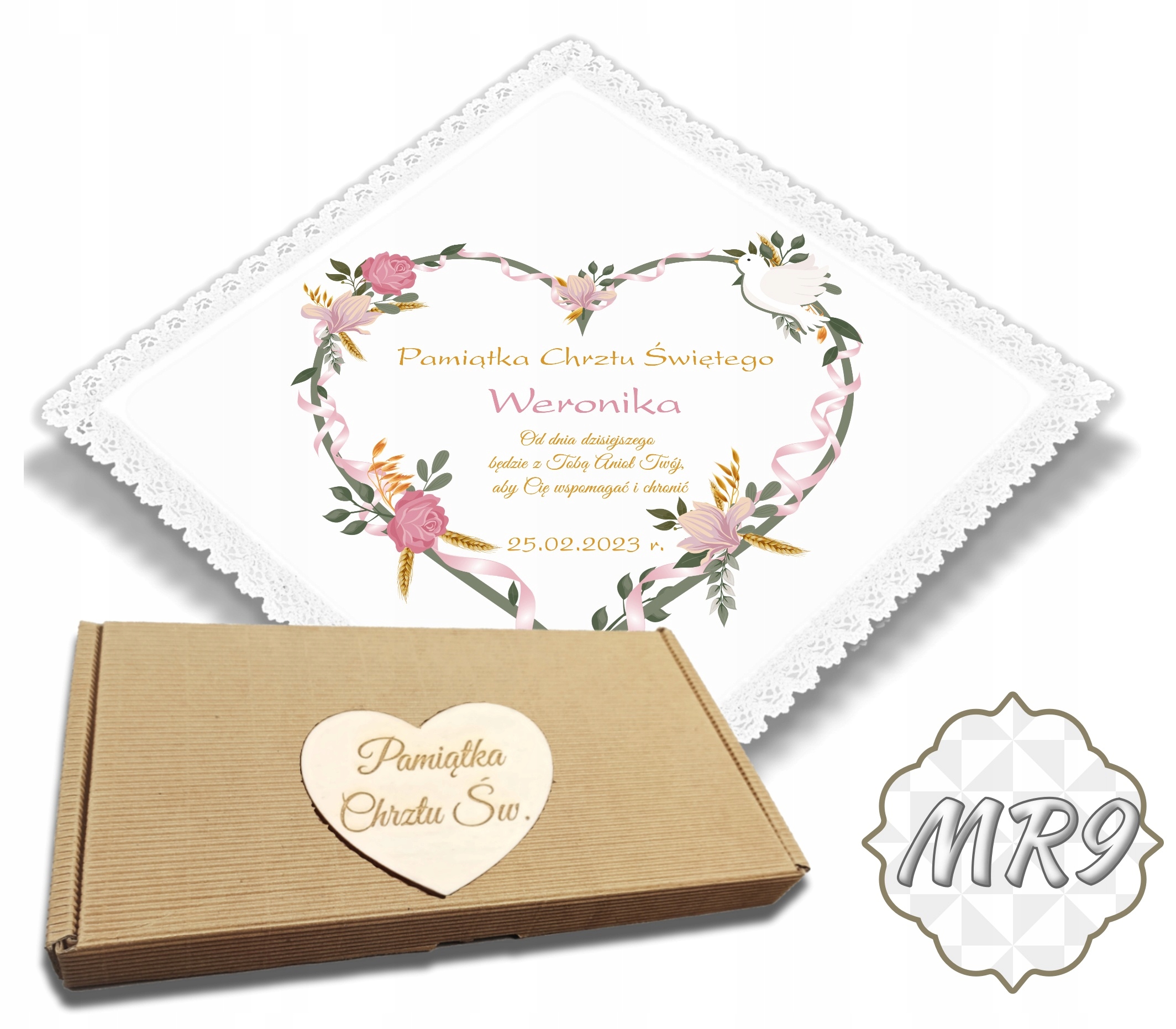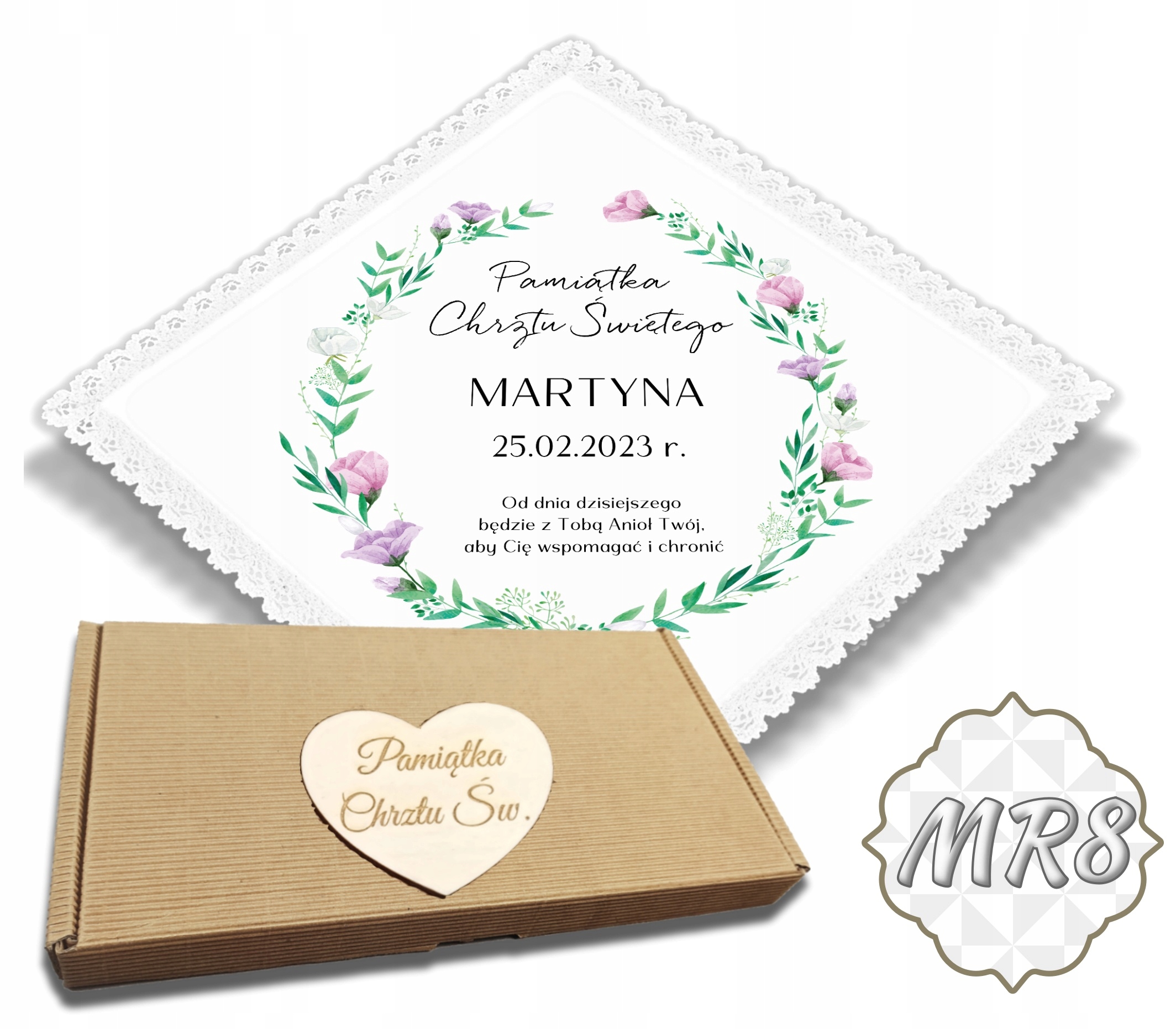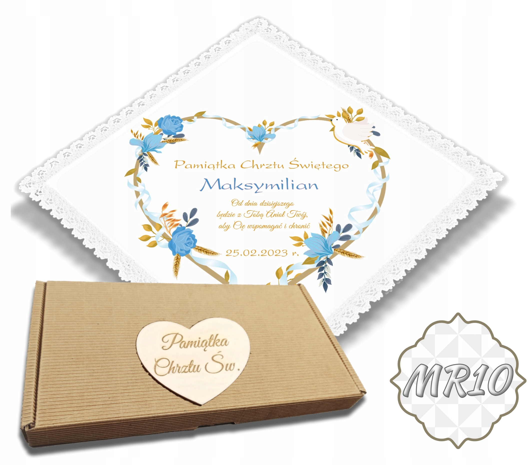 ✳️Коробка, що входить до набору, виготовлена з гофрованого картону та прикрашена гравіюванням сердечка з написом «Сувенір з Святе Хрещення».