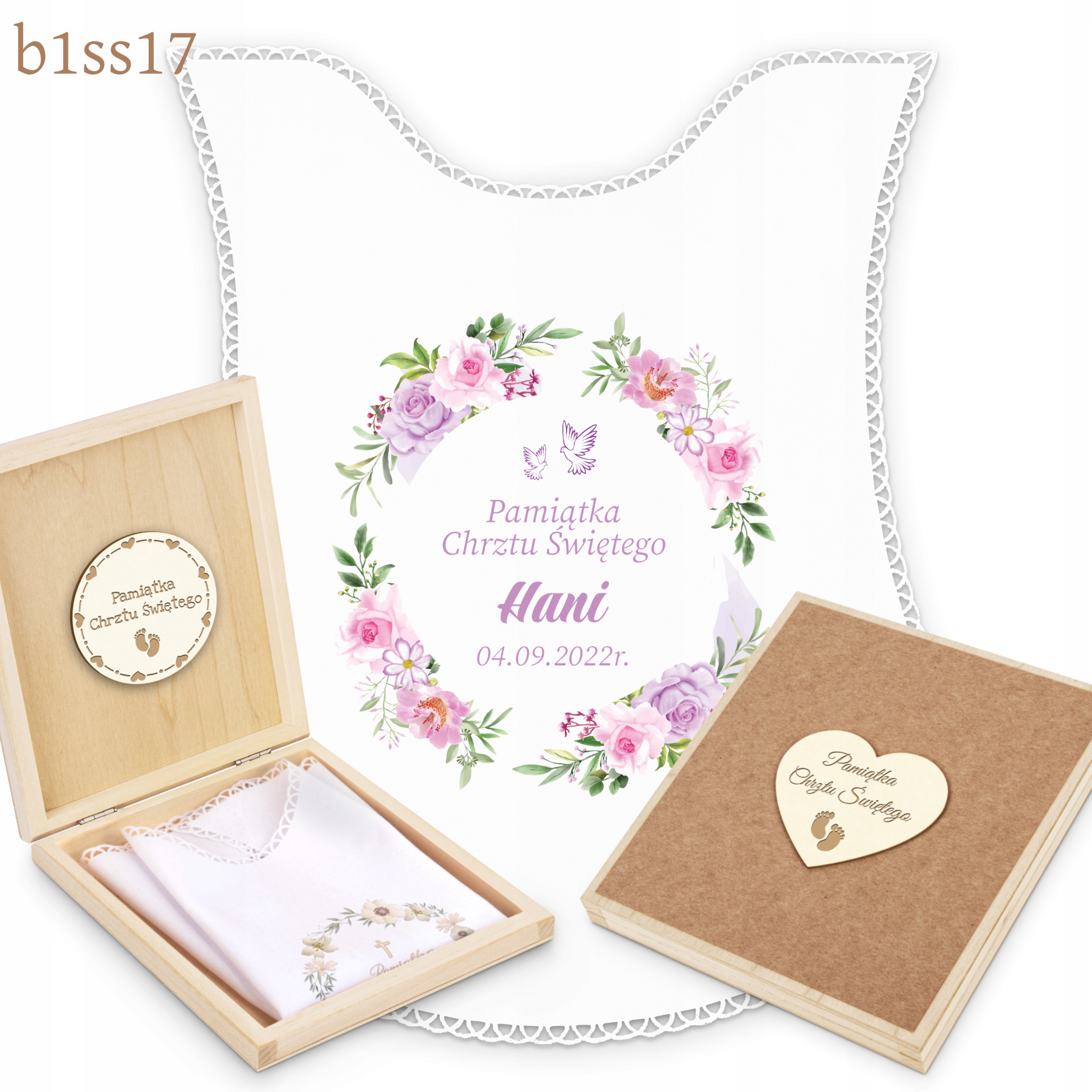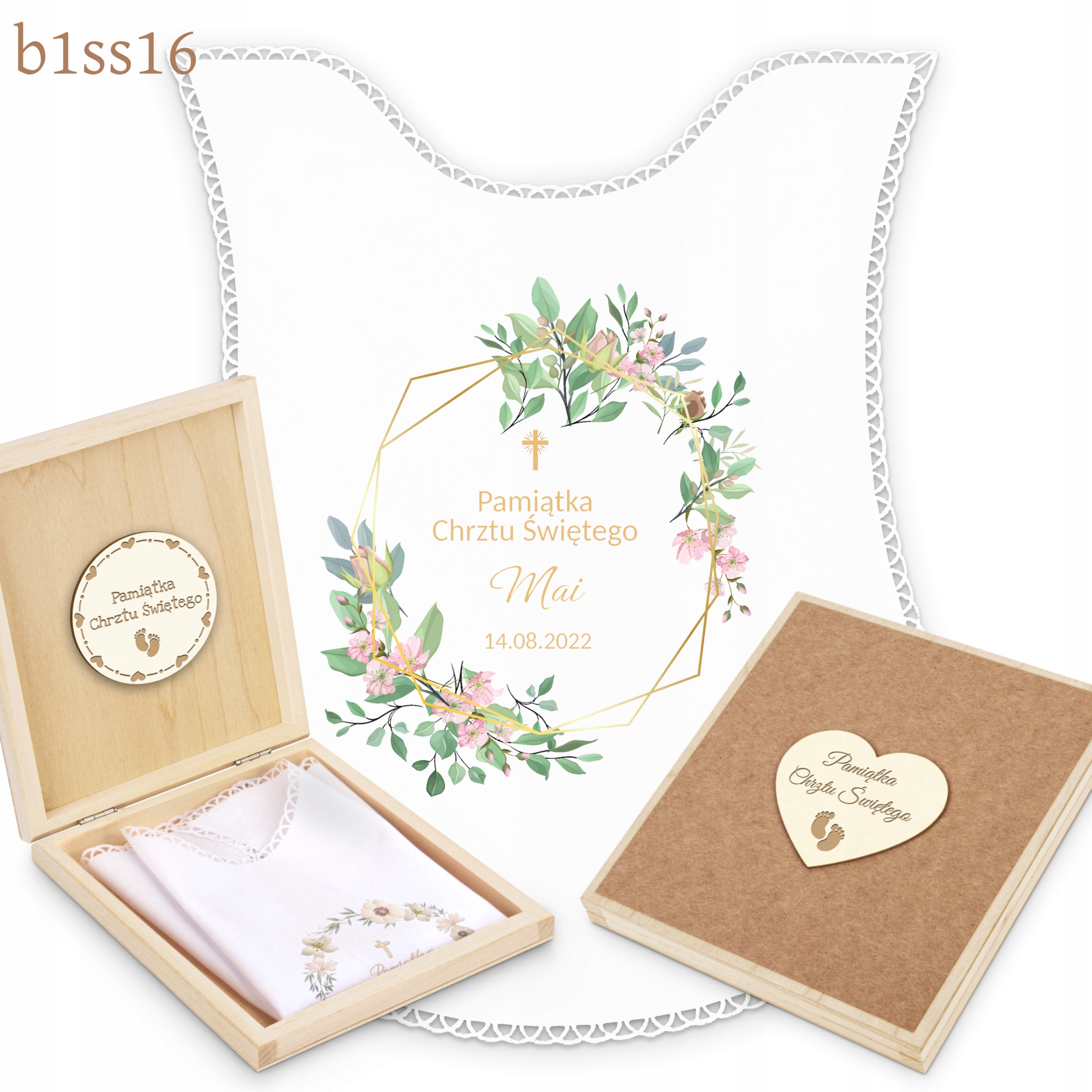 - обробка білою бавовною мереживо, дерев'яна коробка з сувенірним декором,