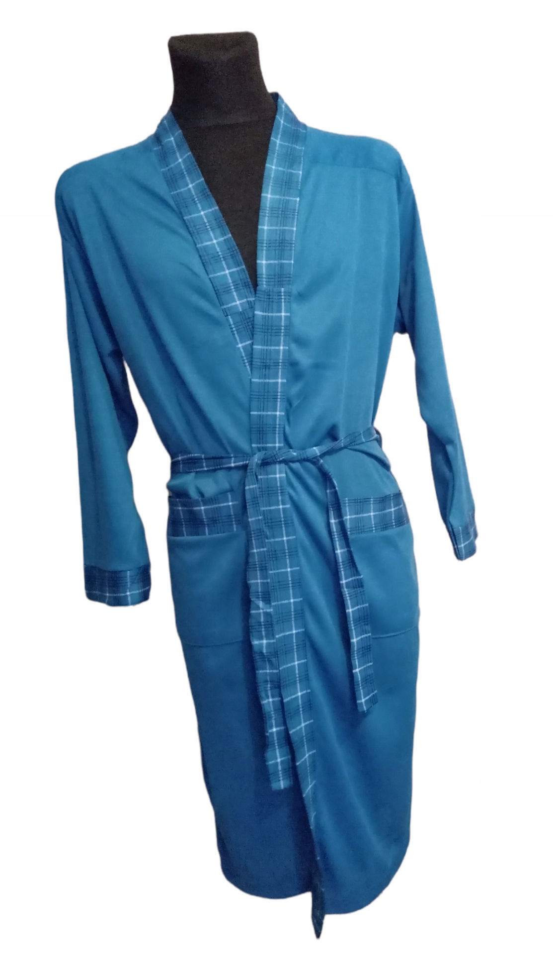 Зовні підв'язується поясом, а всередині додатково пришита, що не дозволяє халату відкриватися. Внутрішній ремінь не видно, коли традиційний ремінь зав’язаний.