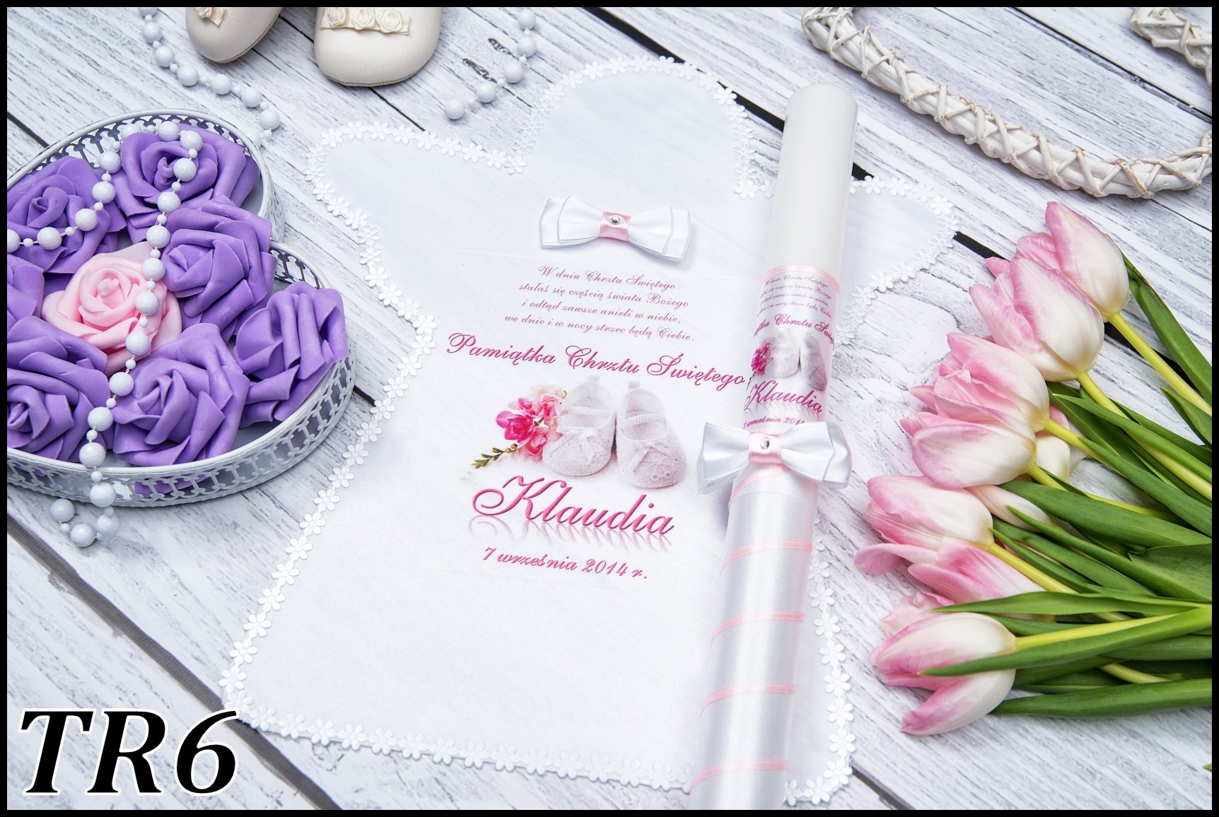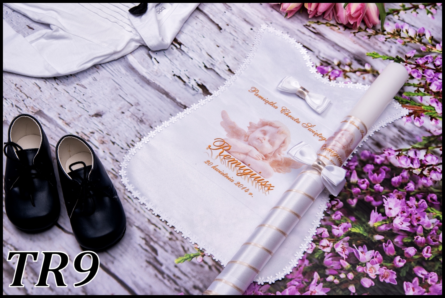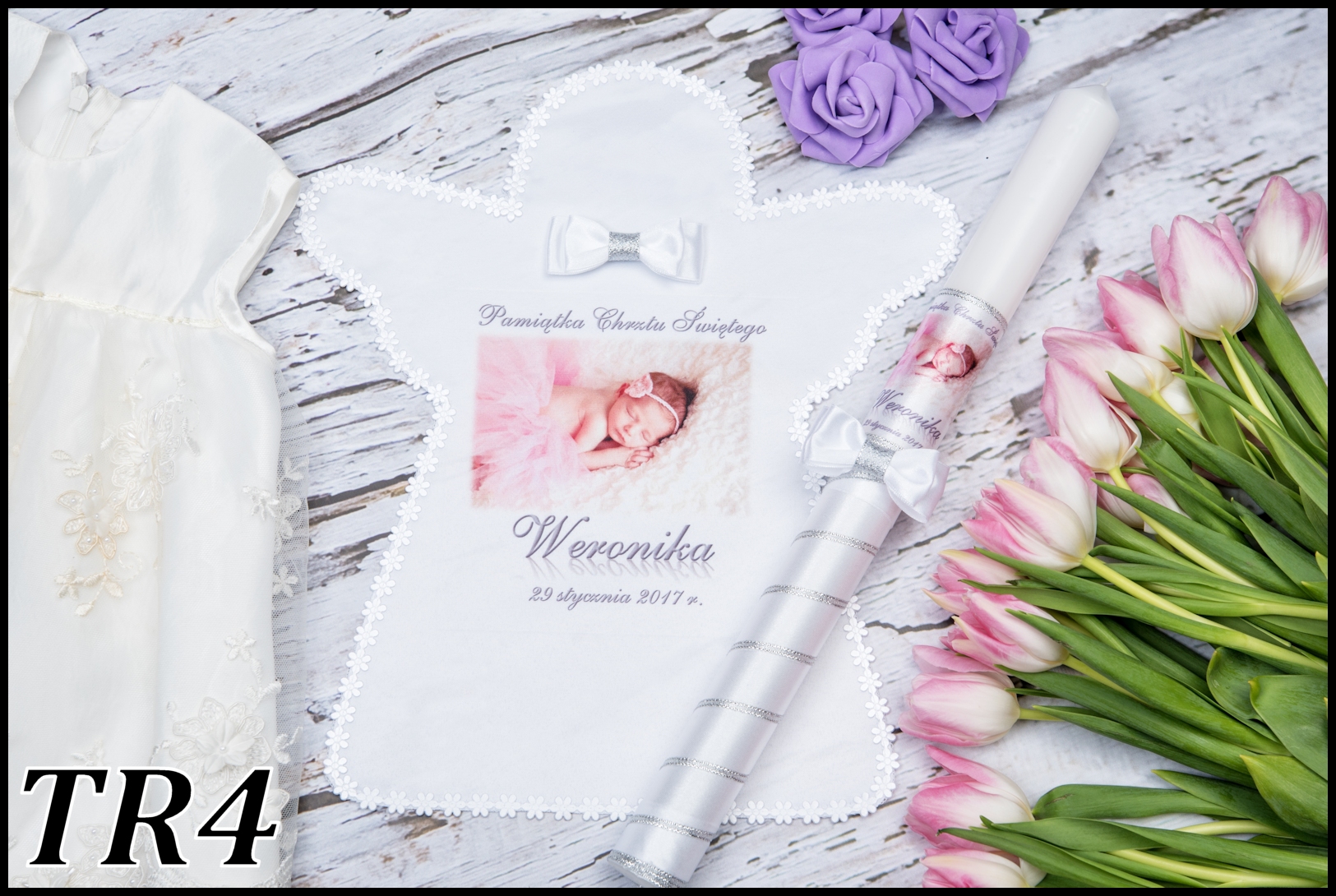 2) ім'я (імена дитини) та дата хрещення (формат написання дати на мантії завжди залишається, тобто представлений на вибраний шаблон, якщо ви бажаєте інший, будь ласка, додайте примітку "змінити формат дати на...")