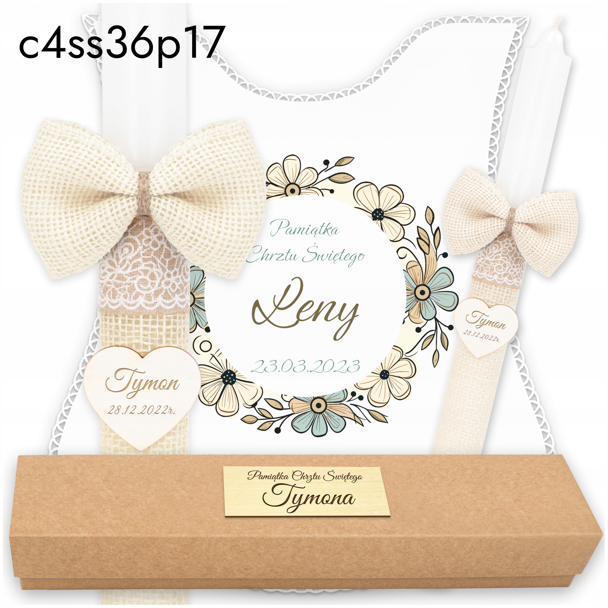 Свічка для хрещення + мантія для хрещення - ПЕРСОНАЛІЗАЦІЯ - стиль БОХО