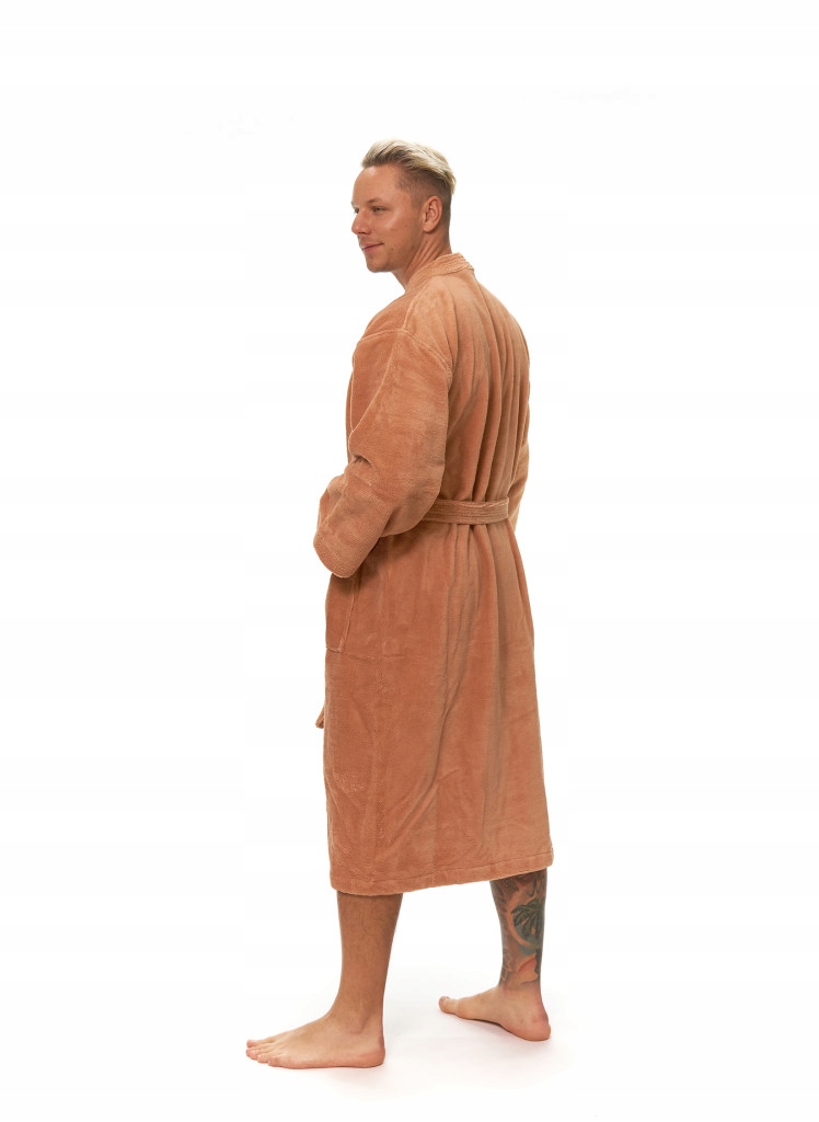 Чоловічі халати елегантного крою кімоно поєднують комфорт і функціональність завдяки особливій комбінації махрової бавовни та мікрофлісу. Загорніться в розкішний халат, який зігріє вас після вечірнього прийняття ванни або душу і стане чудовим супутником для моментів заслуженого відпочинку після напруженого дня. Його універсальний крій ідеально підходить для будь-якої форми тіла та забезпечує комфорт із відтінком елегантності.