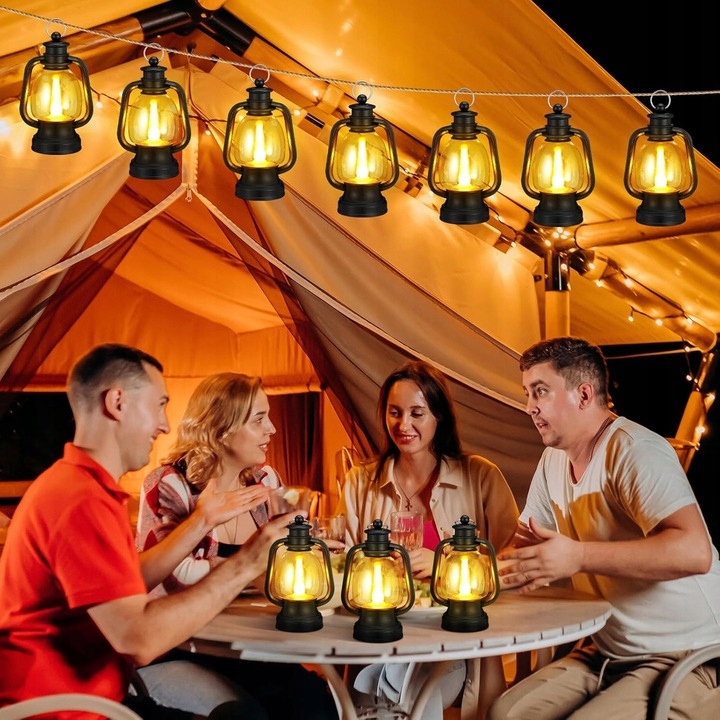 🎃 Вінтажний і сільський дизайн: Світлодіодні ліхтарі створені у вінтажному стилі зі світлодіодним освітленням, як мерехтлива свічка. Додайте таємниче та заспокійливе відчуття в поєднанні з м’яким теплим світлом, яке є привабливим.