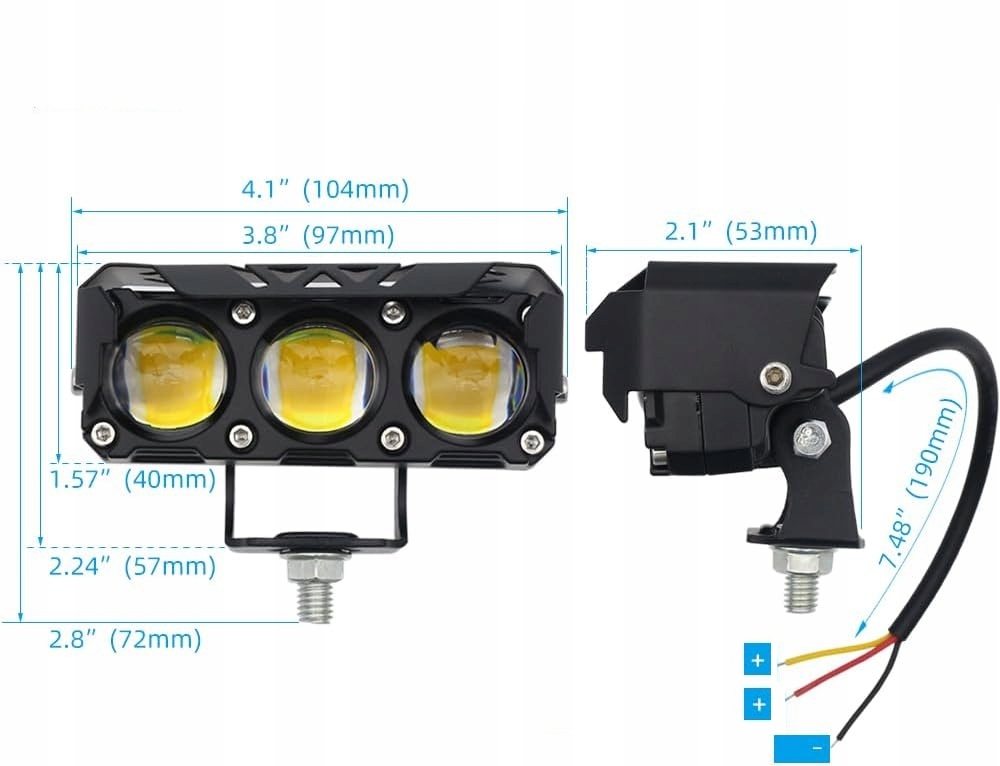 - ✅Червоний кабель слід підключити до плюсового полюса (+) (біле світло)