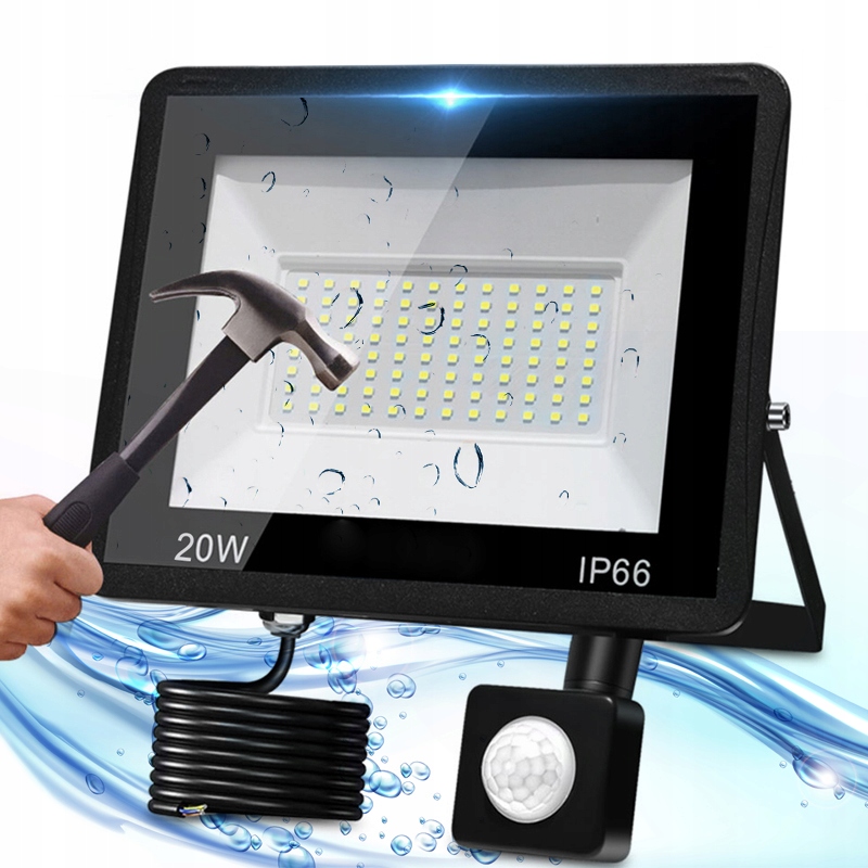 Світлодіодна галогенна лампа з датчиком руху, прожектор 20 Вт IP66 230 В