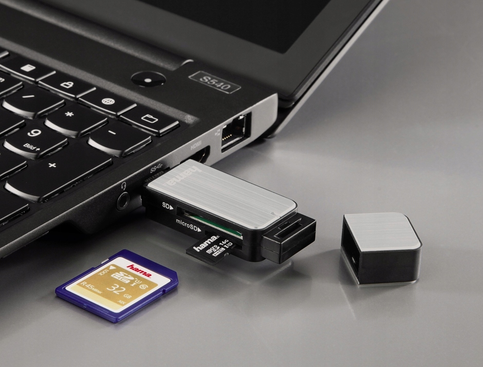 зчитувач карт HAMA SD/ MicroSD. У нас є ідеальна пропозиція для вас: багаторазовий зчитувач карт SD/MSD/CF з HAMA зі стандартом USB 3.0.