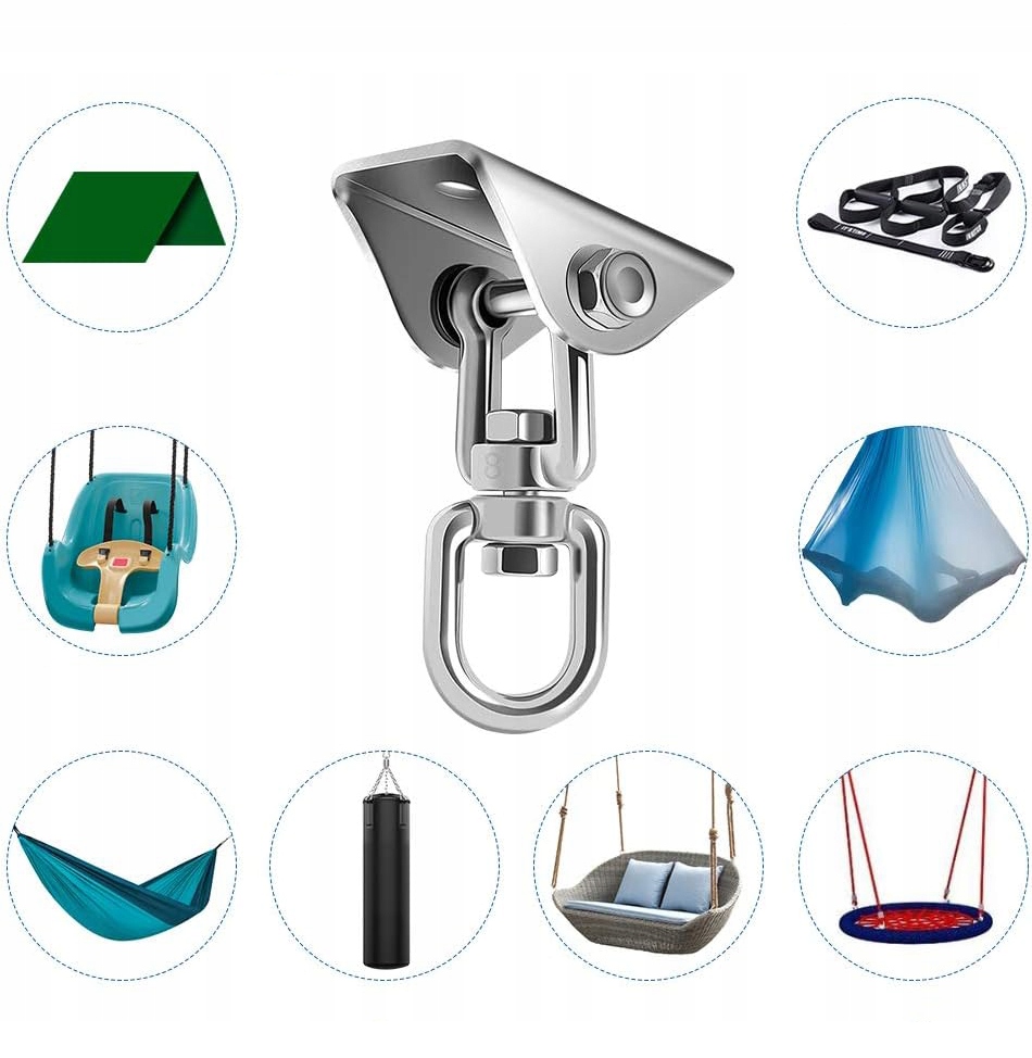 підвісне крісло зі стельовим гачком, обертається 360 °, запобігає заплутанню або скрученню. Інноваційний дизайн забезпечує більш широке та гнучкіше використання. Ідеально підходить для гойдалок, гамаків, підвісних сидінь, навчальних мішків