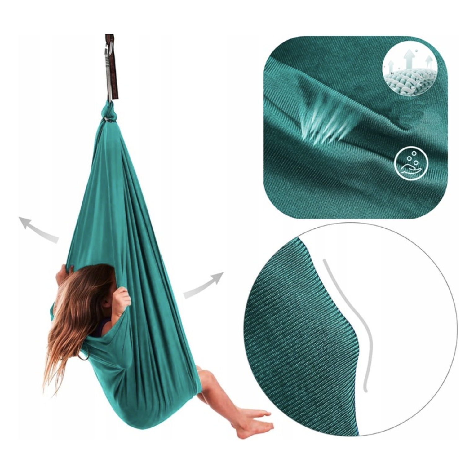 Гамак з еластичного нейлону характеризується надзвичайною стійкістю до сліз, що робить його ідеальним рішенням для дітей. Навіть після тривалого використання матеріал збереже свою первісну форму та довговічність, пропонуючи дітям м'який і комфортний простір відпочинку.