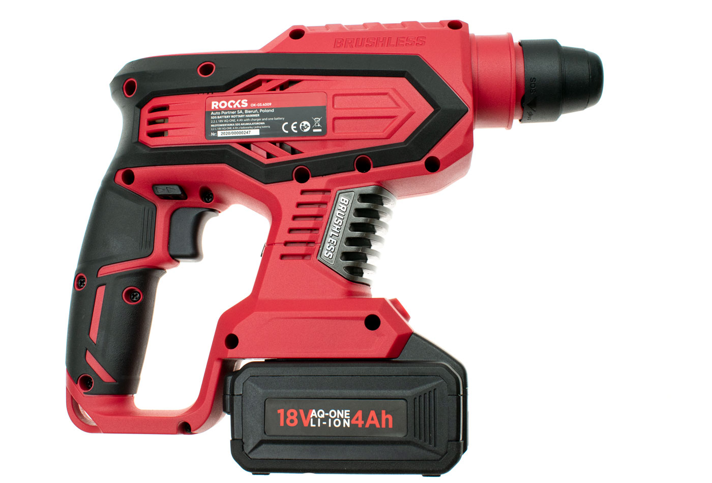 - Літій-іонний перфоратор ROOKS DC 18V 4A