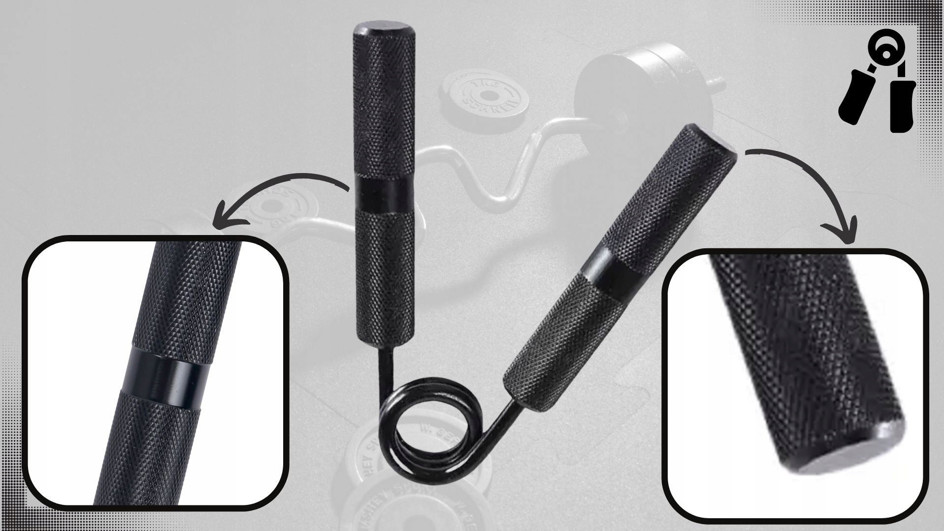 - ✅Ергономічні ручки з виступами, виготовлені з алюмінію, пристосовуються до вашої руки та гарантують надійний хват і безпечні вправи.