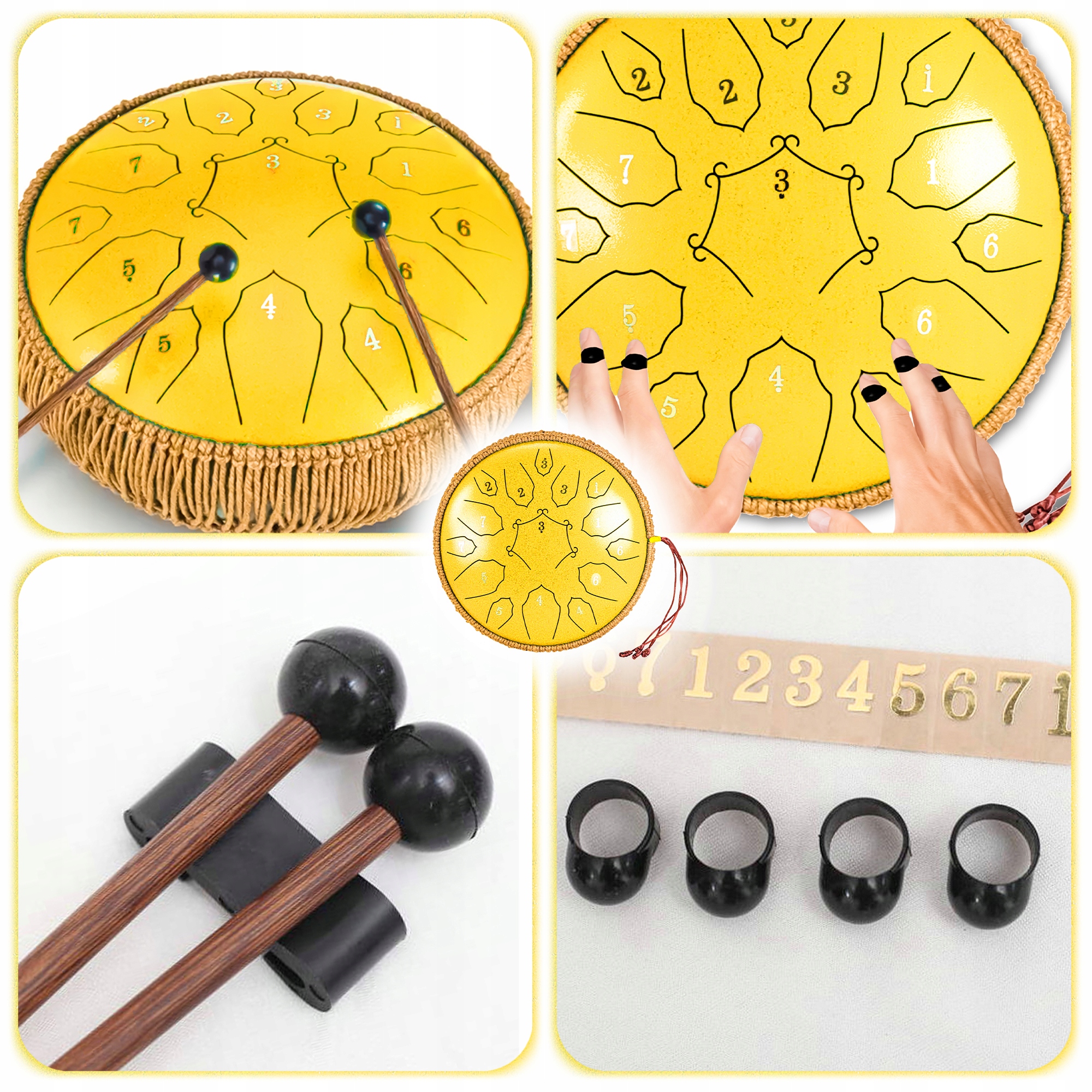 БАРАБАН З МУЗИЧНОЮ СТАЛЮ, ЖОВТИЙ, 30 СМ, 15 ТОНІВ + АКСЕСУАРИ