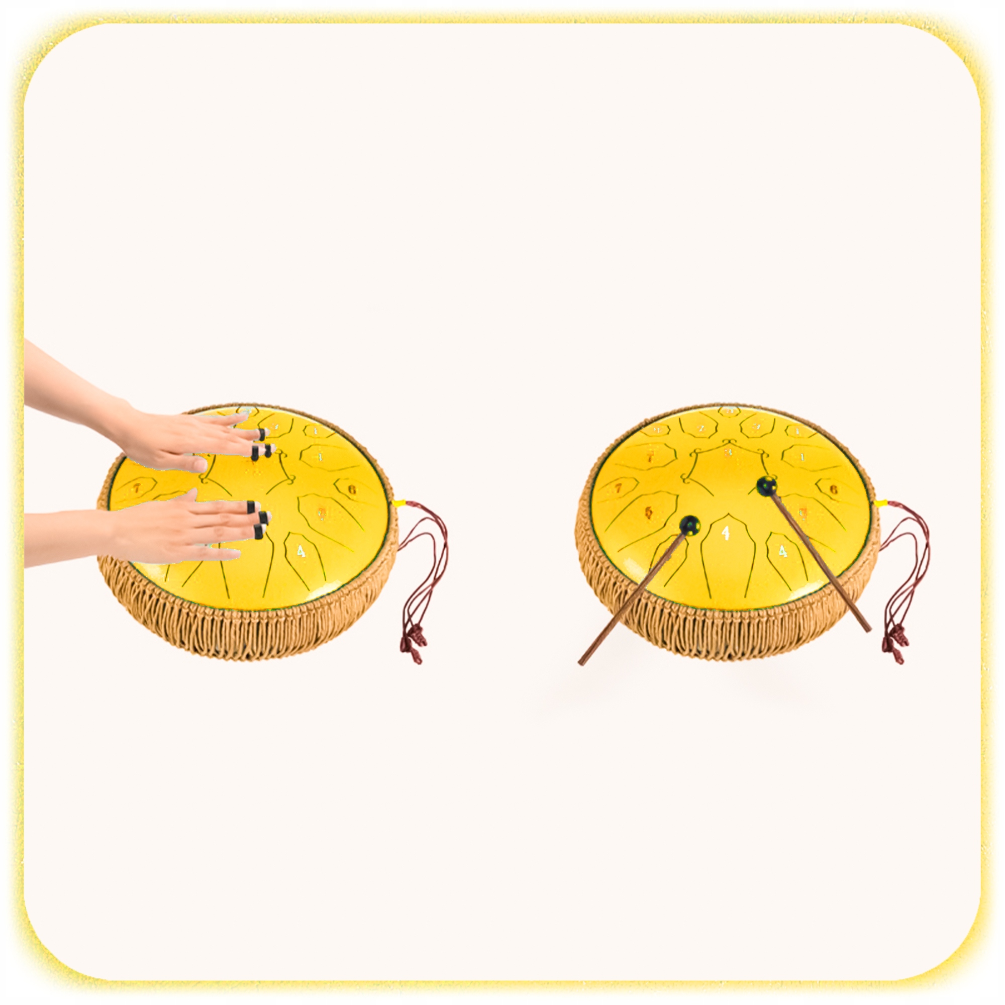 ✔️ 1 × Барабан із язиком Handpan (жовтий, сталевий, 15 тонів) \
