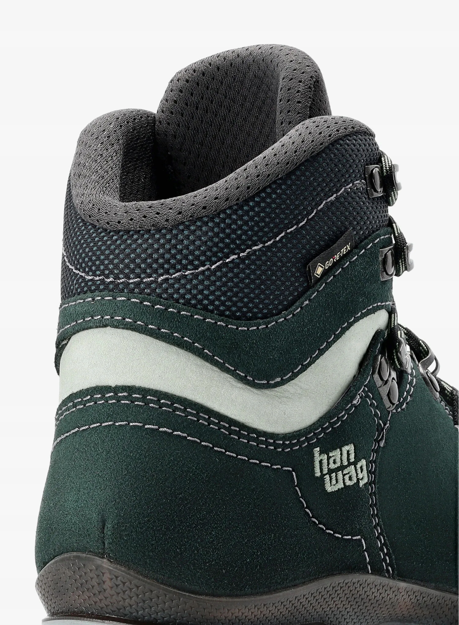 Жіночий Hanwag Tatra Light GTX - Взуття з бензином/м'ятним походом в основному виготовляється з високоякісної замші. Передня частина використовує гумову арматуру, яка призначена для захисту верхньої частини від легких пошкоджень. Вся структура підтримується комфортом продуктивності Gore-Tex®. Його завдання - забезпечити високий рівень водостійкості, зберігаючи дихання взуття. Технологія LFX також використовувалася у верхній частині. Це спеціальна конструкція верхньої частини, яка призначена для збільшення переміщення щиколотки вперед і назад, забезпечуючи при цьому стабільність кожного кроку.