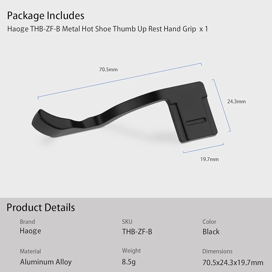 Haoge Grip з металевою підставкою для великого пальця для Nikon ZF ZF, чорний THB-ZF-B