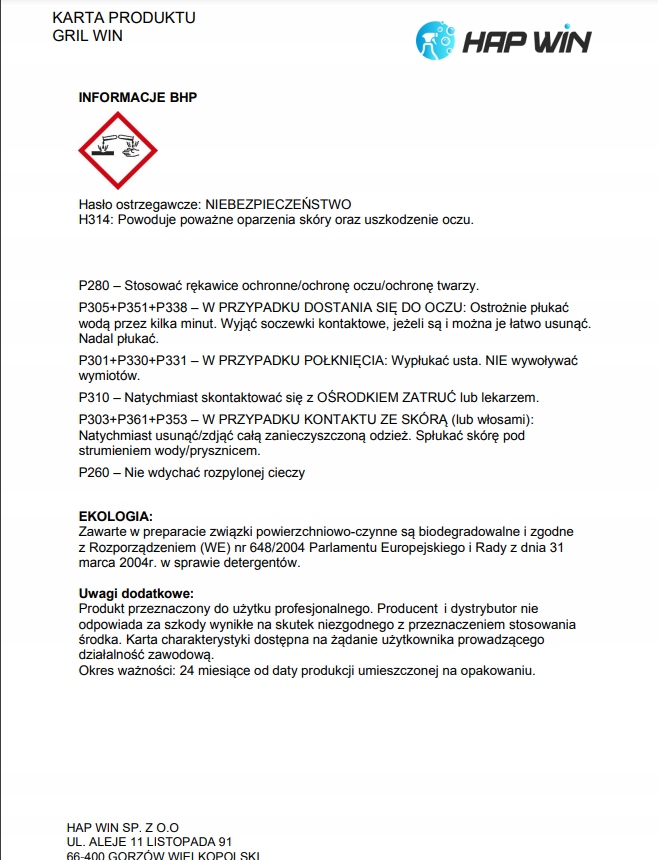 GRILL WIN ефективний засіб з дуже сильною > дії у вигляді піни, яка, завдяки своїй спеціалізованій формулі, впорається ефективно та швидко з найважчими опікамибілки і жири. GRILL WIN після використання надає блиск очищеним поверхням.