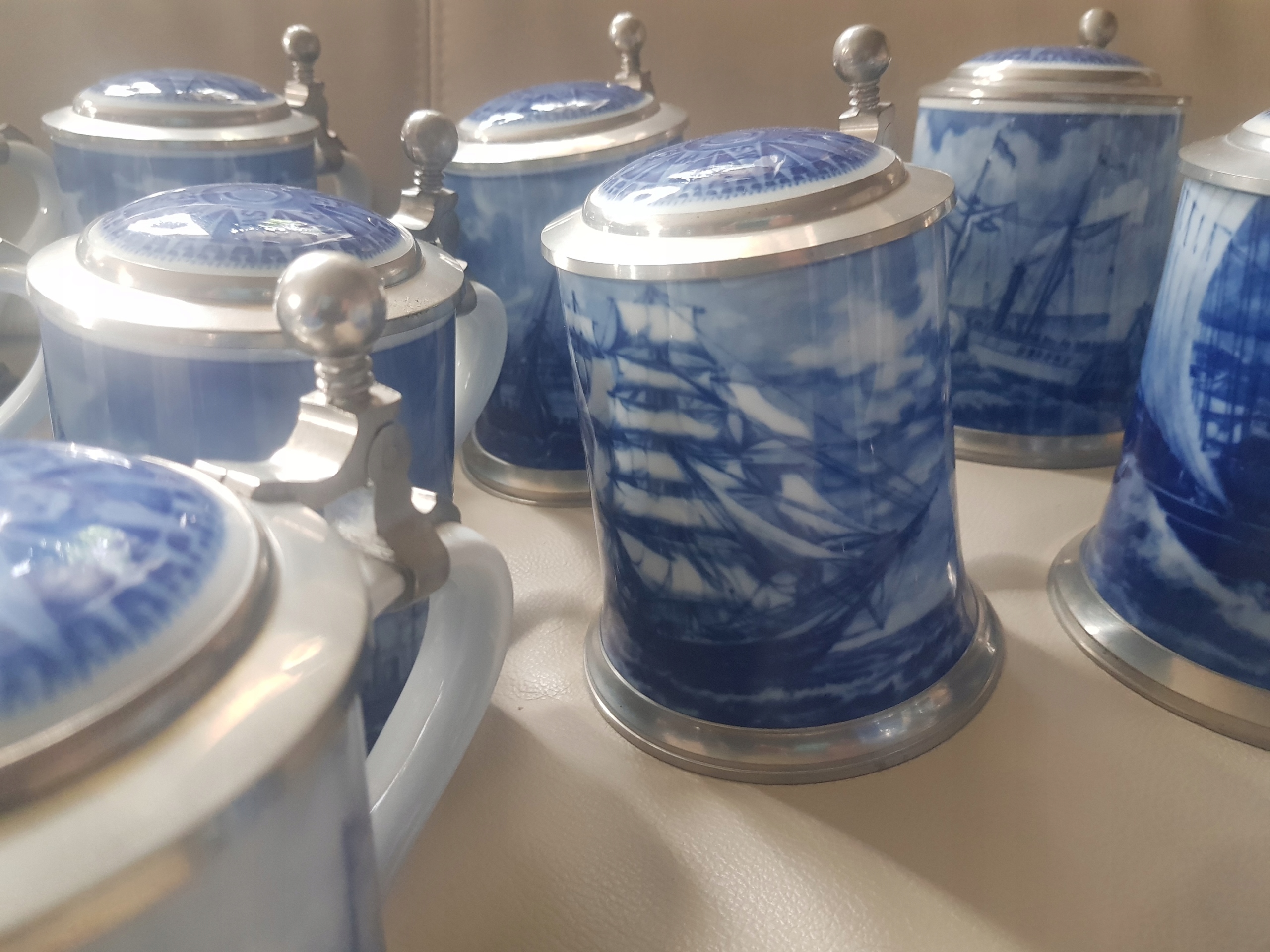 Тема аукціону - це набір 16 морських кружок із зображенням вітрильних кораблів. Куфлес з обмеженою межею мистецтв, що виходить щороку. Керлі відрізняються з 1977 по 1992 рік. хороший стан.