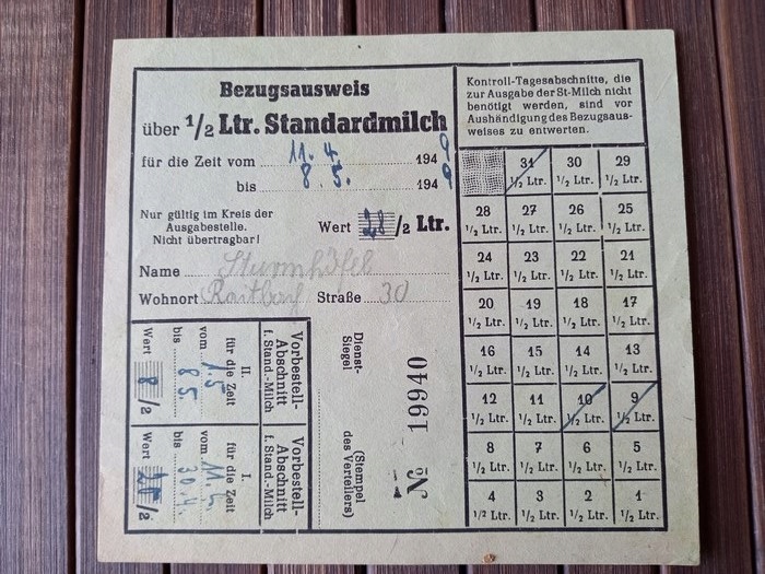 Харчова карта Німеччини 1949 року