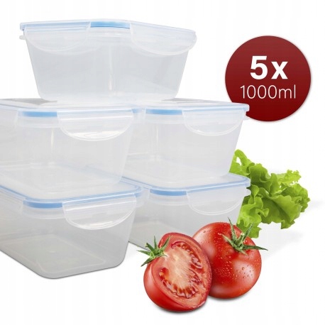 5 контейнерів з ємність по 1000 мл кожна, призначена для зберігання продуктів з герметичною кришкою - ідеально підходить для зберігання продуктів, як інгредієнтів, так і цілого посуду