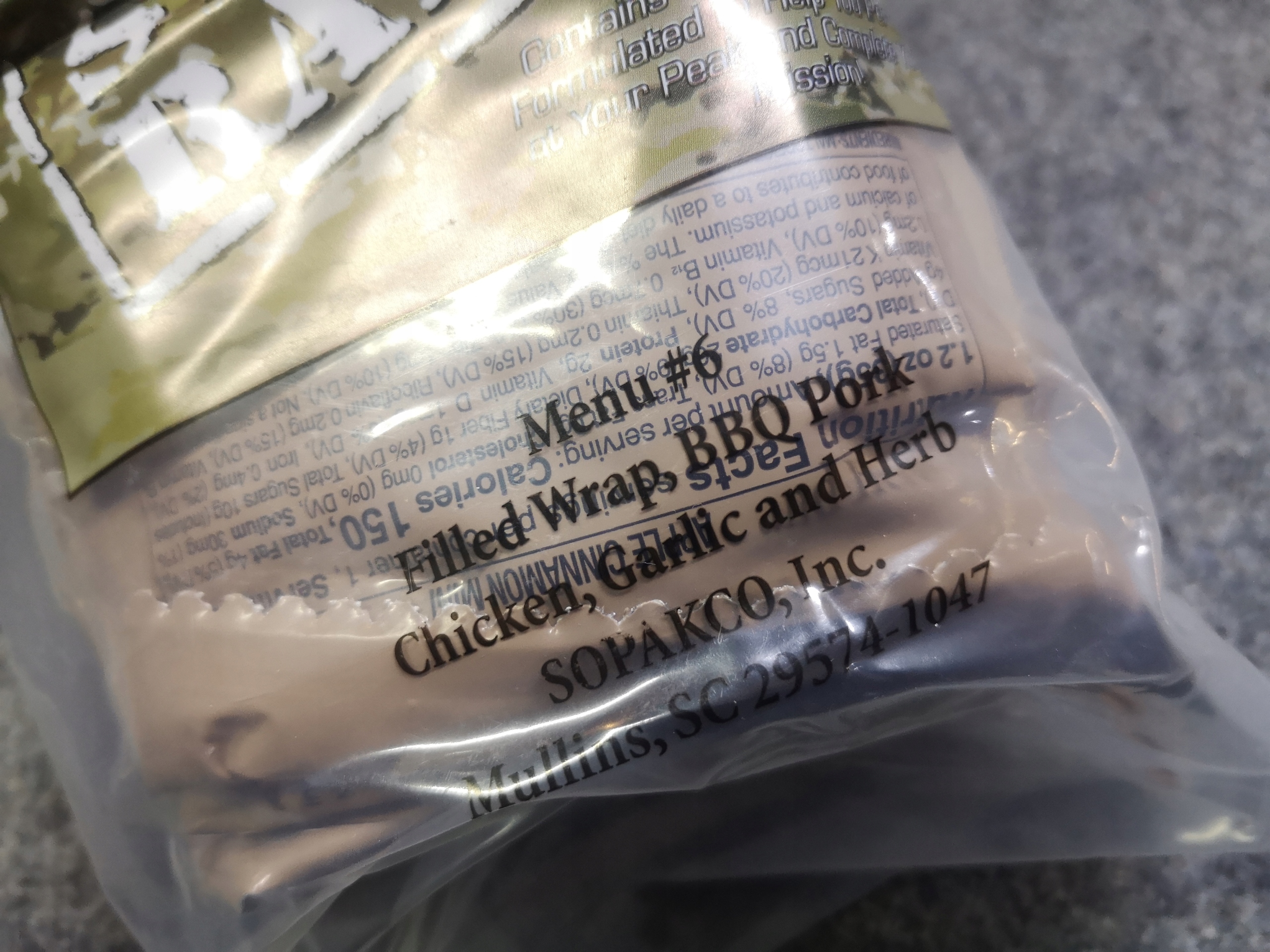 FSR FIRST STRIKE PATION MRE US ARMY SRG SURVILAL MEAL