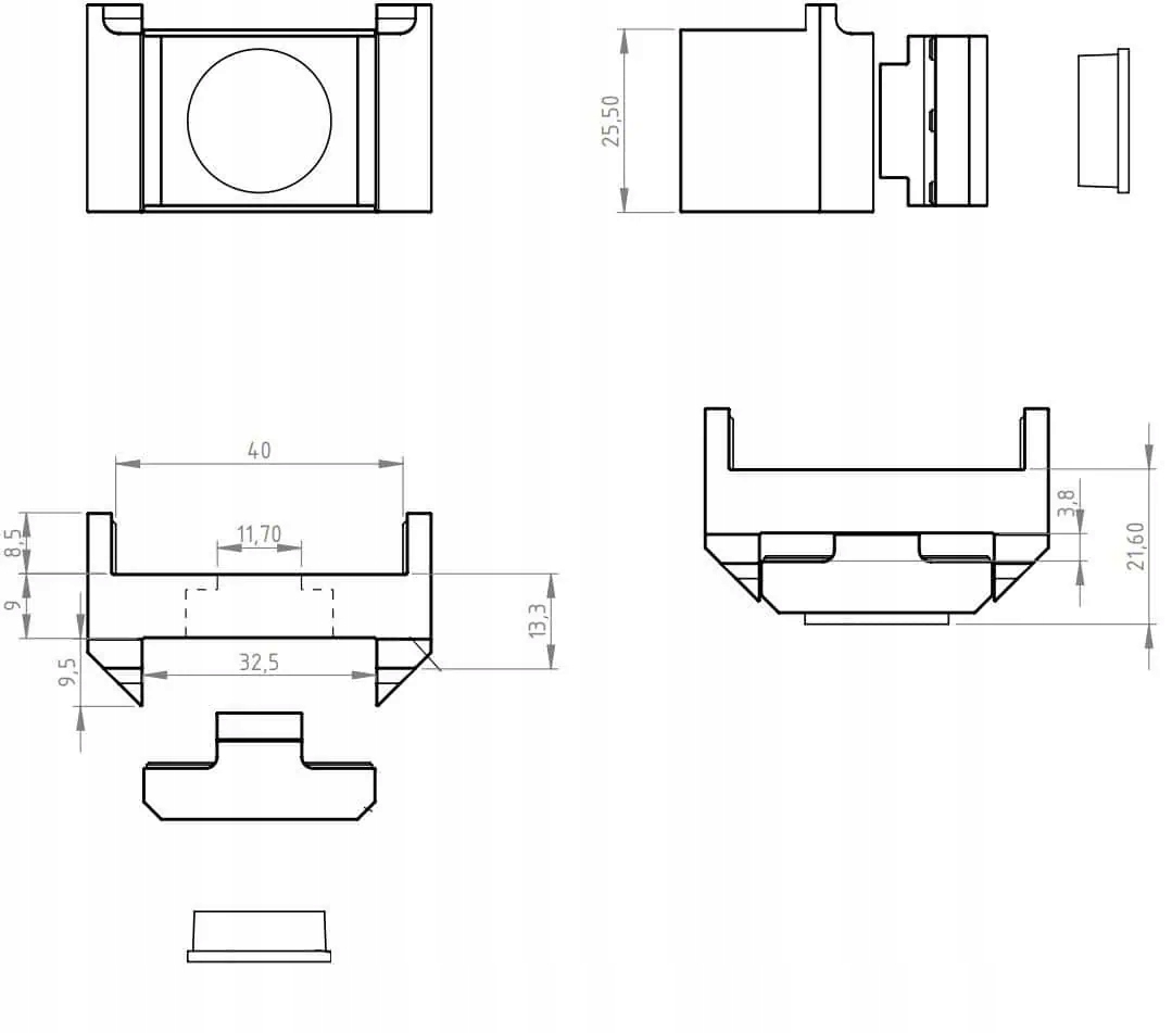 харчування з листовим металом під кріпленням 60x40 -butt для чорних панелей RAL 9005 (встановлений 3)